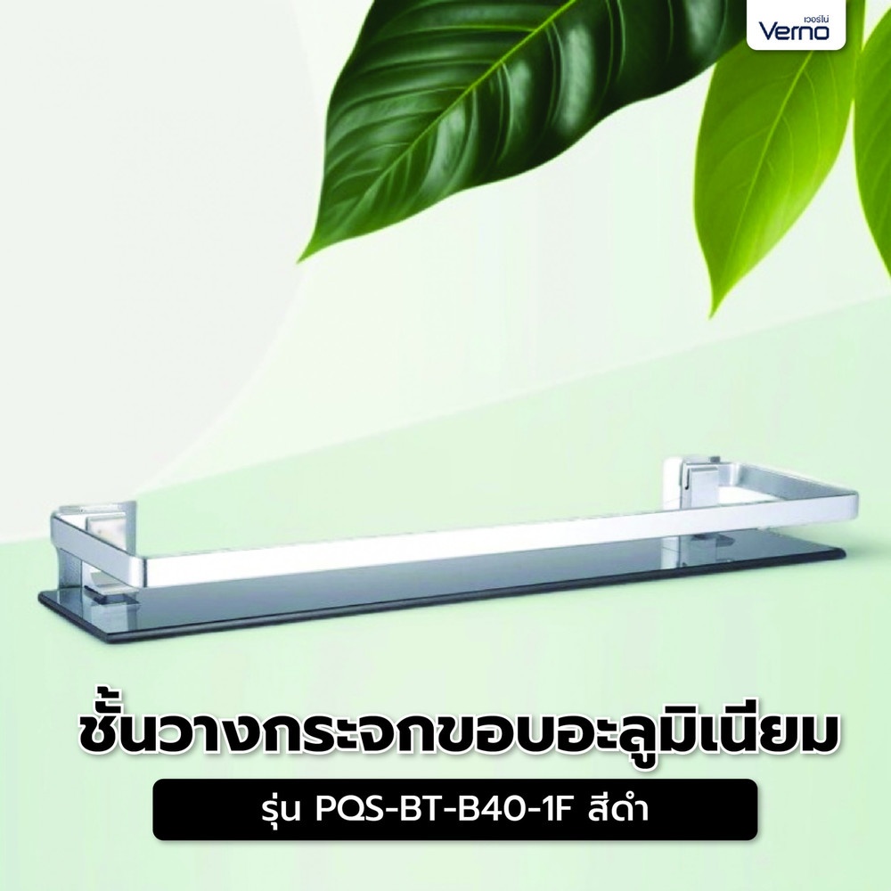 Verno ชั้นวางกระจกขอบอะลูมิเนียม ยาว 38 ซม. รุ่น PQS-BT-B40-1F สีดำ