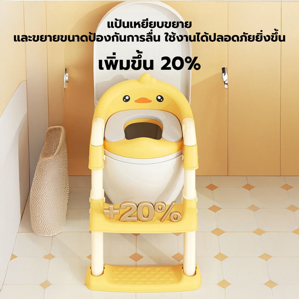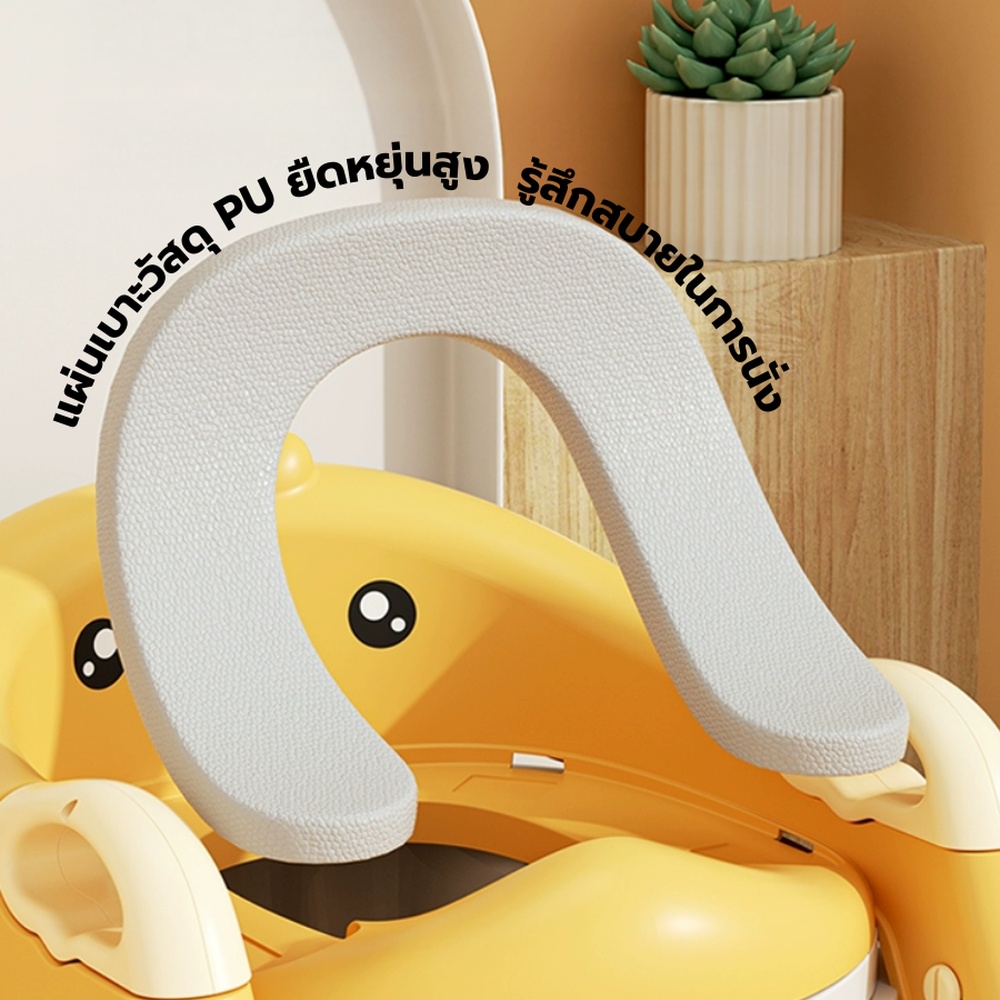 ฝารองนั่งเด็กแบบมีบันไดเป็ด ทรงน่ารักในสีเหลืองสดใส ไม่เพียงแต่ช่วยให้เด็กๆ สามารถเข้าห้องน้ำด้วยตัวเองได้ง่ายขึ้น แต่ยังสร้างประสบการณ์ที่น่าสนุกและไม่น่าเบื่อในการเรียนรู้การใช้ห้องน้ำอีกด้วย! เบาะ PU คุณภาพดีช่วยให้เด็กนั่งสบาย ไม่เกิดอาการบาดเจ็บ หรือระคายเคืองขณะใช้งาน และบันไดที่แน่นหนาช่วยเพิ่มความมั่นใจในการขึ้นและลง ดูแลสุขอนามัยของลูกน้อยให้ดีที่สุดวันนี้!