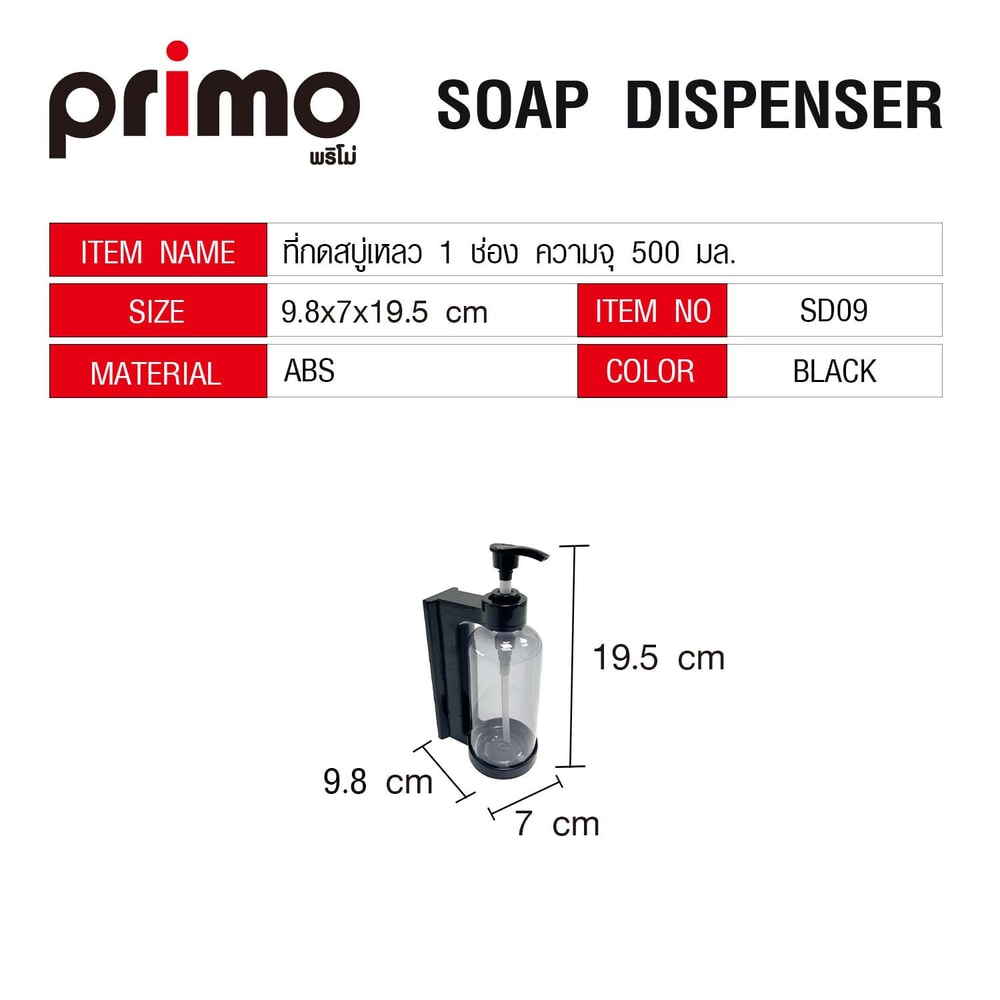 Primo ที่กดสบู่เหลวหัวปั๊ม ความจุ 300 มล. รุ่น SD09 ขนาด 9.8x7x19.5ซม. สีดำ