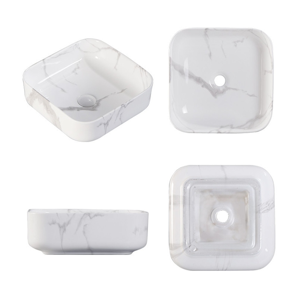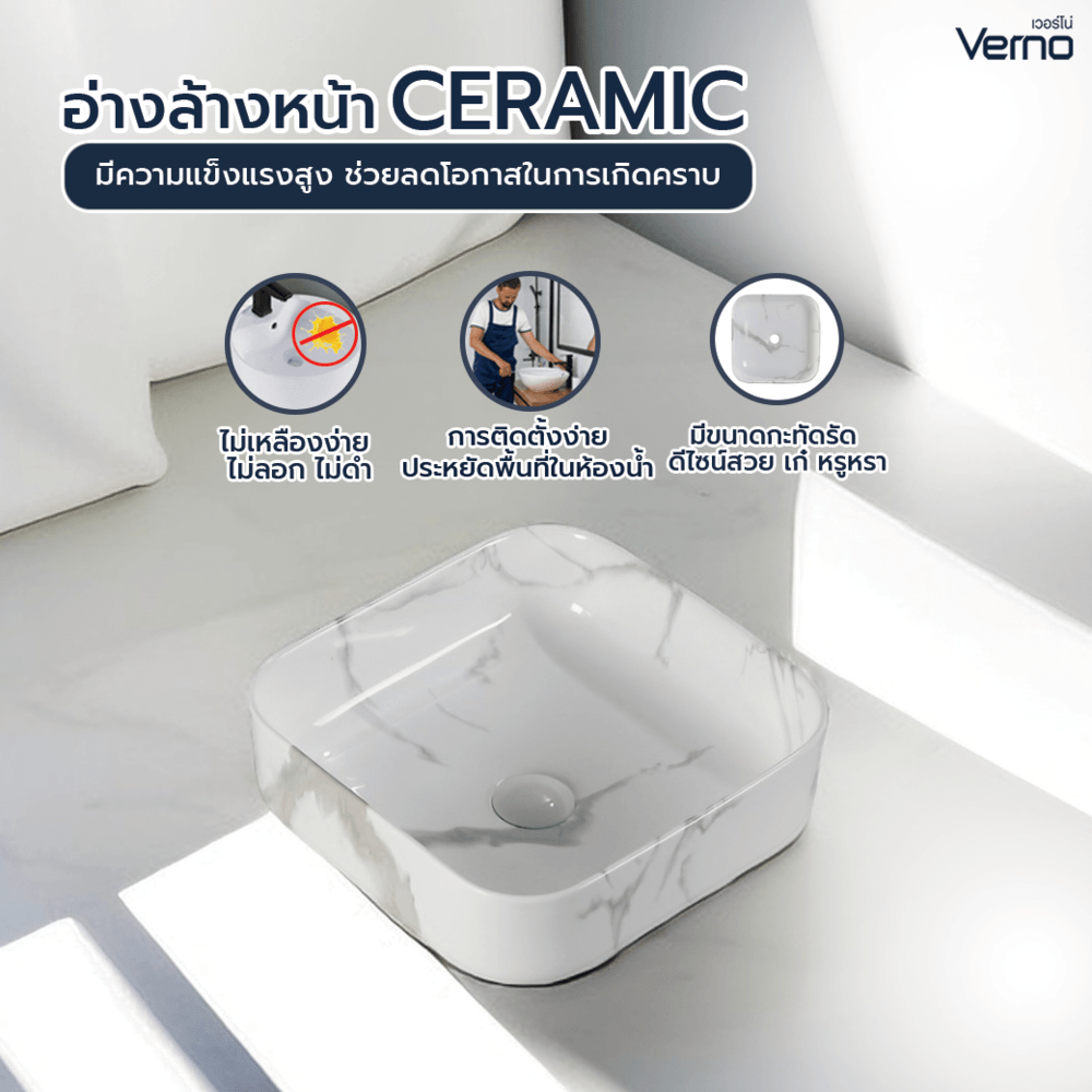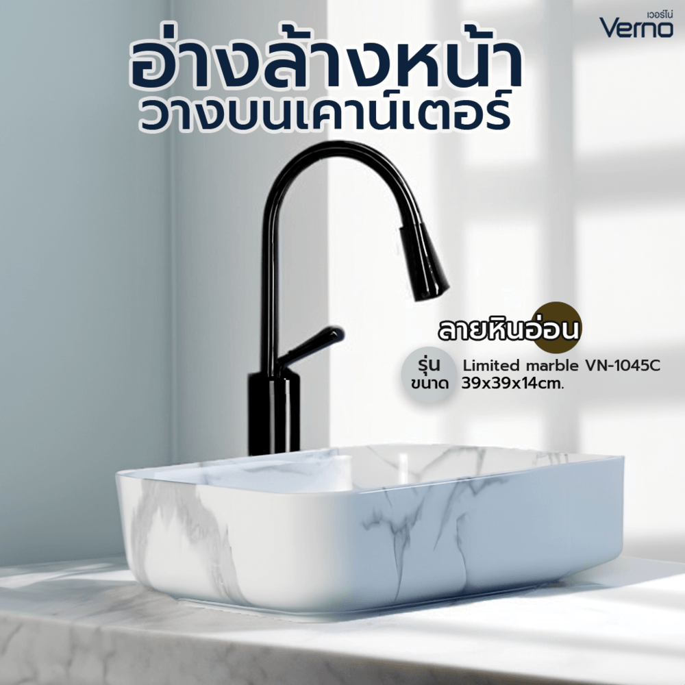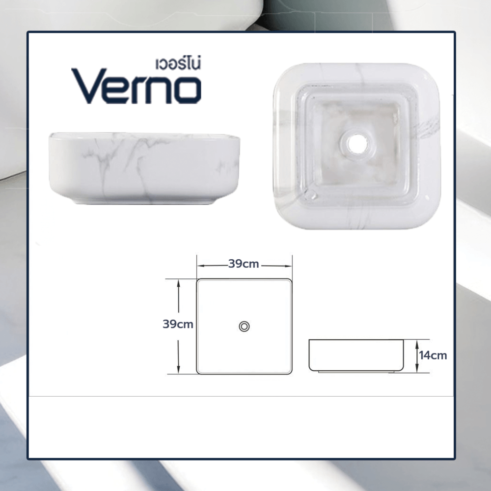 Verno อ่างวางบนเคาน์เตอร์ ขนาด 39x39x14cm รุ่น Limited marble VN-1045C สีขาว