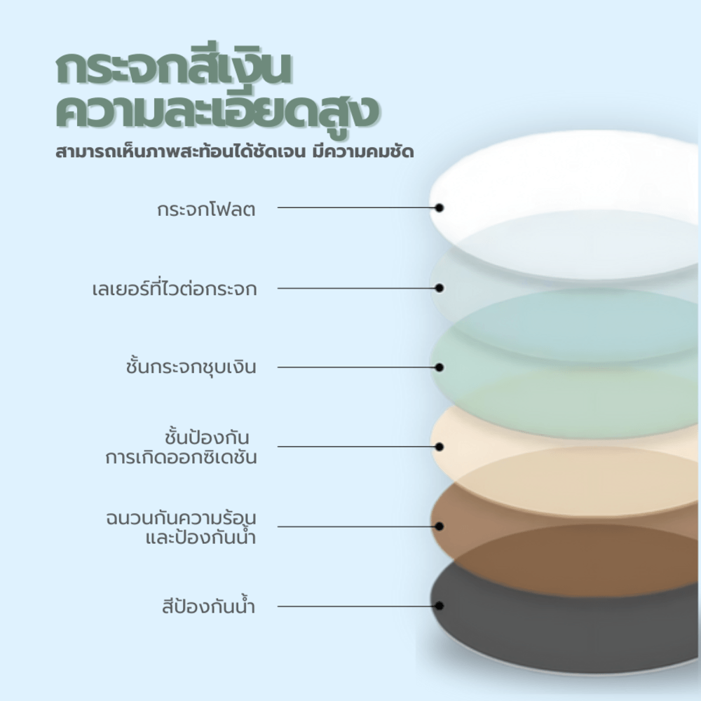 ออกแบบเรียบง่าย เข้ากับทุกสไตล์การตกแต่งบ้าน ติดตั้งได้หลากหลาย ทั้งแนวตั้งและแนวนอนให้เลือกตามต้องการ ปลอดภัยสูง ด้วยการเจียริมขอบเพื่อป้องกันการบาด ปราศจากสารปรอท เพื่อความปลอดภัยต่อสุขภาพ สะท้อนภาพของคุณในทุกวัน สร้างความมั่นใจก่อนออกจากบ้าน ติดตั้งง่ายบนผนังที่แข็งแรงและเรียบ ทำให้คุณไม่ต้องกังวลเรื่องการตกแต่งที่ซับซ้อน ช่วยให้คุณลดเวลาการจัดการและเพิ่มเวลาที่ใช้ในการสร้างความรื่นรมย์ให้กับบ้านคุณ นอกจากนี้ การดูแลรักษากระจกนี้ก็แสนจะง่าย เพียงใช้ผ้านุ่มชุบน้ำหมาดๆ เช็ดให้สะอาด จึงไม่ต้องกังวลเรื่องคราบเปื้อนอีกต่อไป