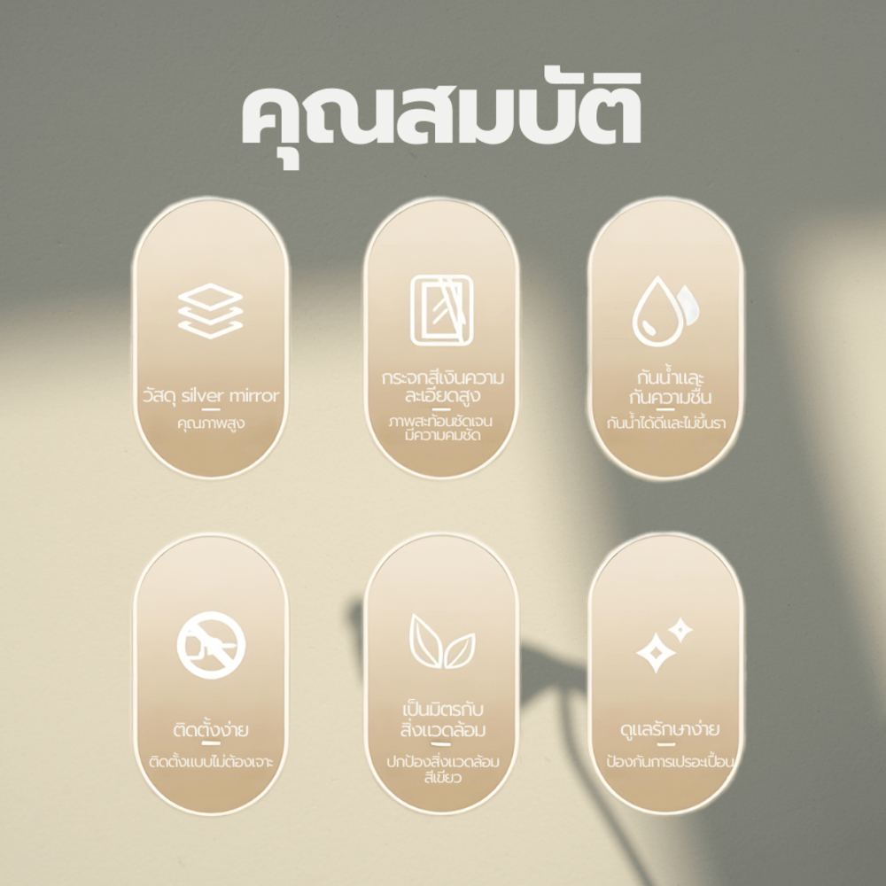 สร้างบรรยากาศที่สวยงามในทุกมุมห้องด้วยกระจกเงาทรงกลม รุ่น JLLS006 ขนาด 45x60 ซม. จาก NICE เป็นทางเลือกที่ดีที่สุดในการปรับแต่งห้องน้ำ ห้องนอน หรือห้องแต่งตัวของคุณ! ด้วย วัสดุคุณภาพสูง ที่มีความแข็งแรงและผิวกระจกที่เรียบแบน ทำให้เห็นภาพสะท้อนชัดเจน คมชัด และปลอดภัยเมื่อใช้งาน ติดตั้งง่ายบนผนังที่แข็งแรงและเรียบ ทำให้คุณไม่ต้องกังวลเรื่องการตกแต่งที่ซับซ้อน ช่วยให้คุณลดเวลาการจัดการและเพิ่มเวลาที่ใช้ในการสร้างความรื่นรมย์ให้กับบ้านคุณ นอกจากนี้ การดูแลรักษากระจกนี้ก็แสนจะง่าย เพียงใช้ผ้านุ่มชุบน้ำหมาดๆ เช็ดให้สะอาด จึงไม่ต้องกังวลเรื่องคราบเปื้อนอีกต่อไป