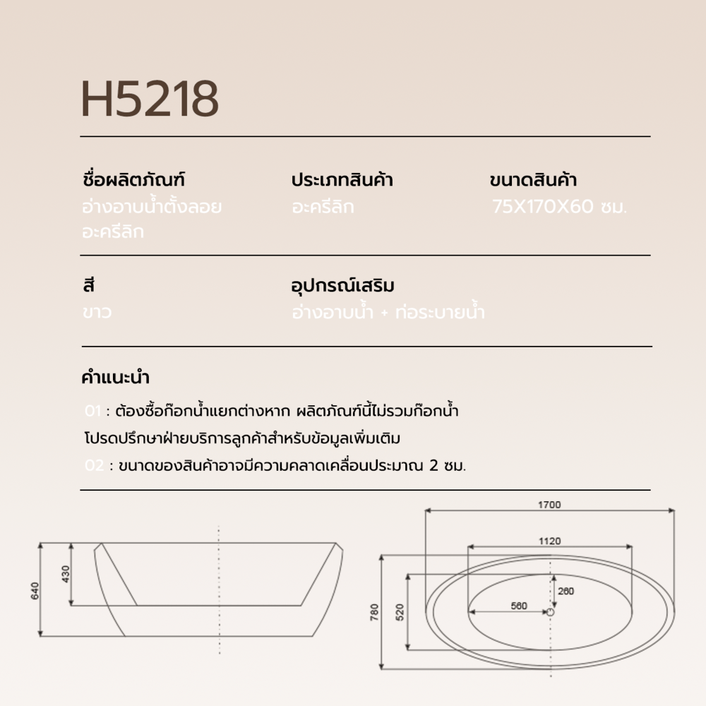| ความสูง / หนา | 60.00 เซนติเมตร |