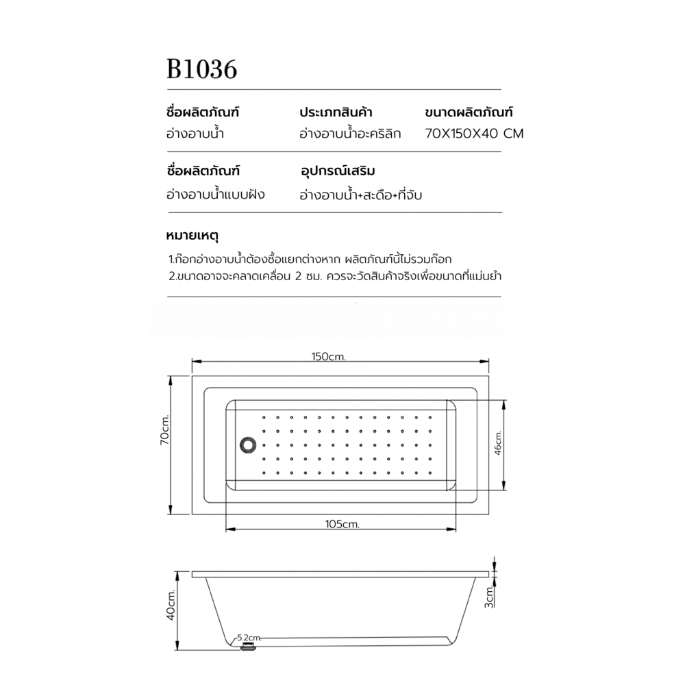 | ความสูง / หนา | 40 เซนติเมตร |