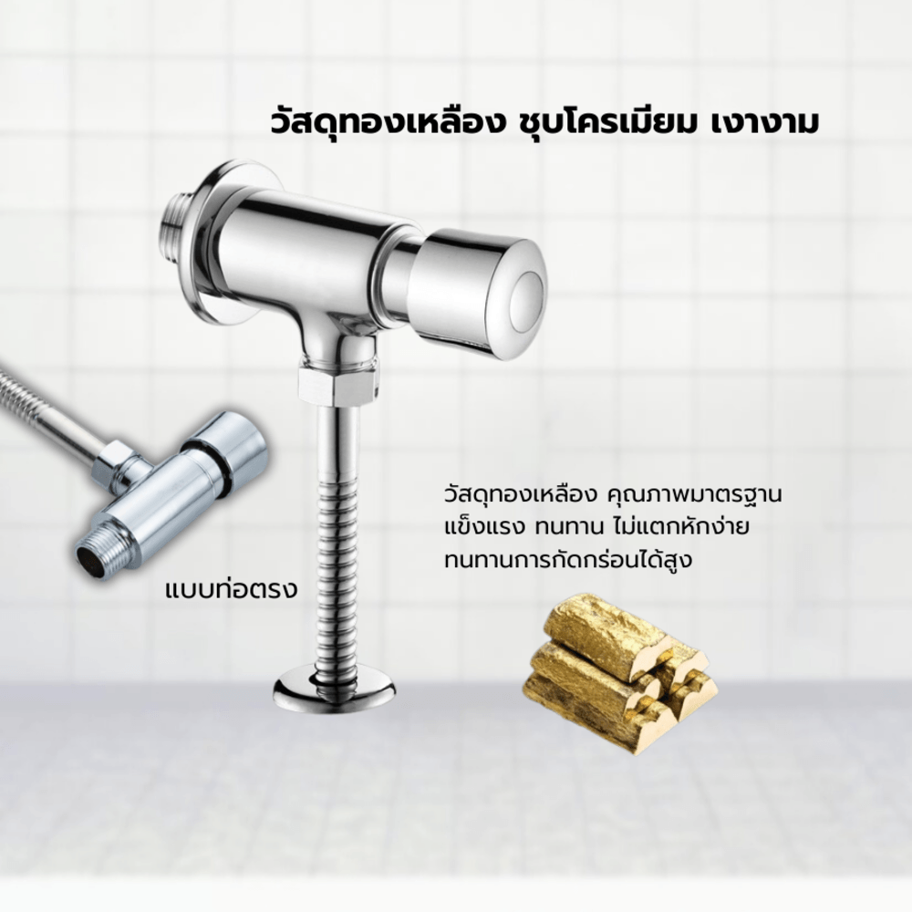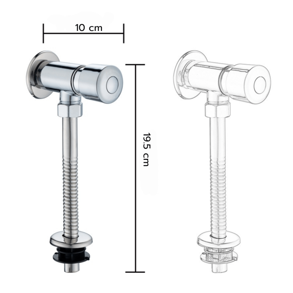 ฟลัชวาล์วโถปัสสาวะ ผลิตจากโลหะผสมชุบโครเมียม คุณภาพมาตรฐาน ให้เนื้อสัมผัสเนียนเรียบ แวววาวสวยงาม ไม่เปราะหักง่าย ทั้งยังใช้งานสะดวกสบายด้วยลักษณะการกดแบบปุ่มกดที่มีความทนทานสูง ให้อายุการใช้งานยาวนาน และรองรับการกดฟลัชน้ำได้มากจำนวนครั้ง ฟลัชวาล์วสามารถติดตั้งใช้งานได้อย่างสะดวกและรวดเร็วด้วยตนเอง ช่วยให้ทุกการซ่อมแซมหรือเปลี่ยนอะไหล่โถสุขภัณฑ์ชายกลายเป็นเรื่องง่ายดายยิ่งขึ้น