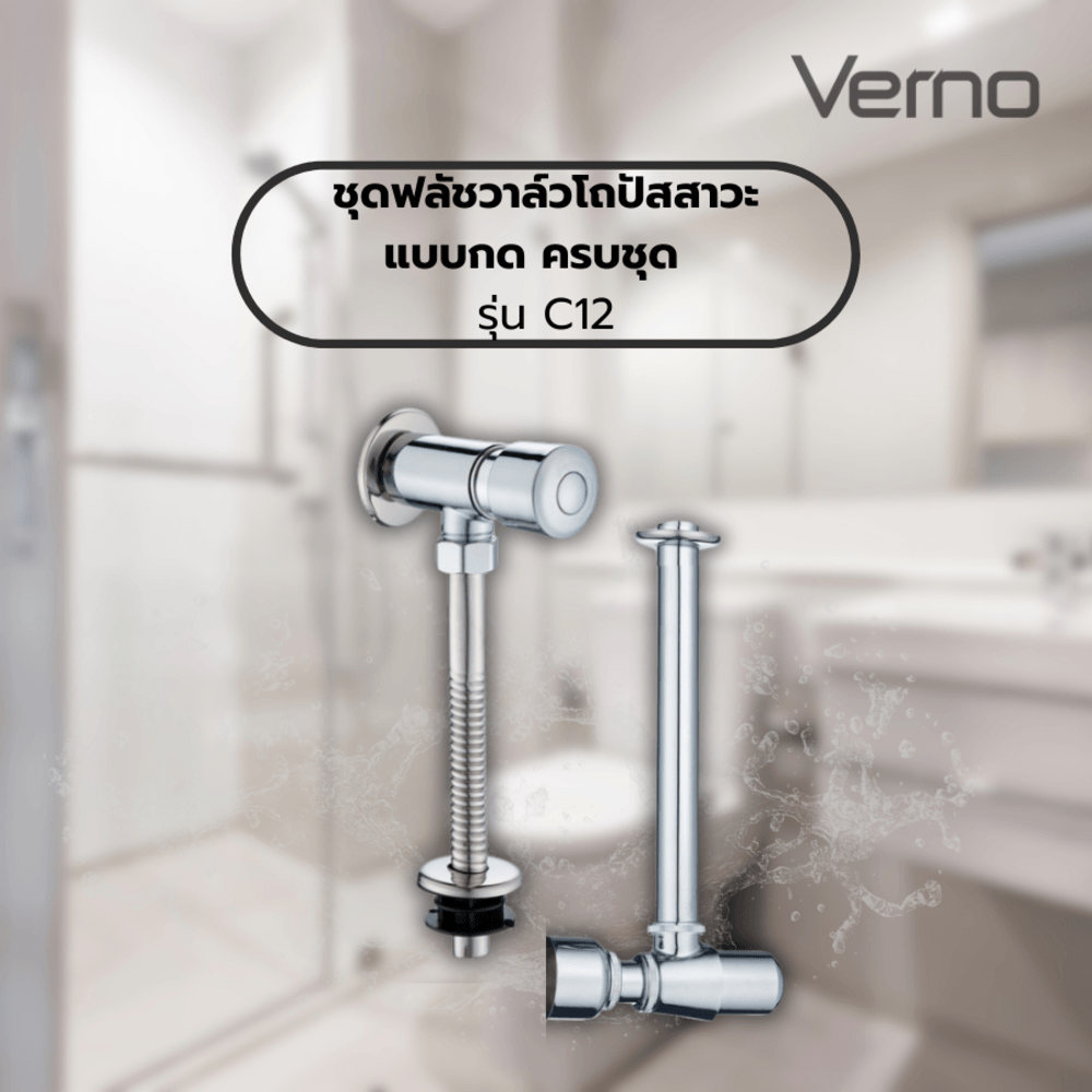 Verno ชุดฟลัชวาล์วโถปัสสาวะแบบกด ครบชุด รุ่น C12 ขนาด 45x25x7 ซม. สีโครม
