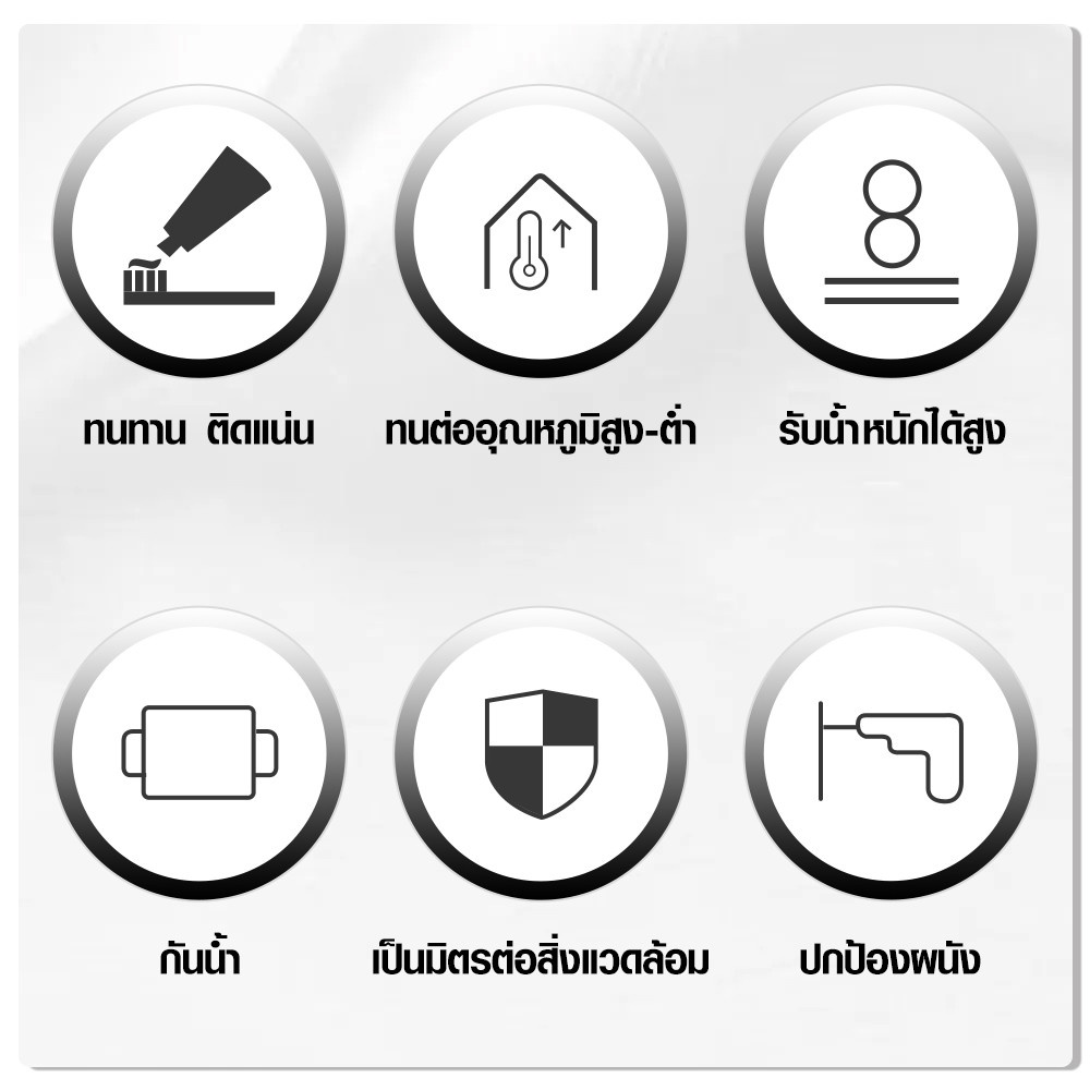 ยึดเกาะได้หลากหลายวัสดุ ไม้ โลหะ คอนกรีต ปูน กระเบื้อง เซรามิก พลาสติกบางชนิด