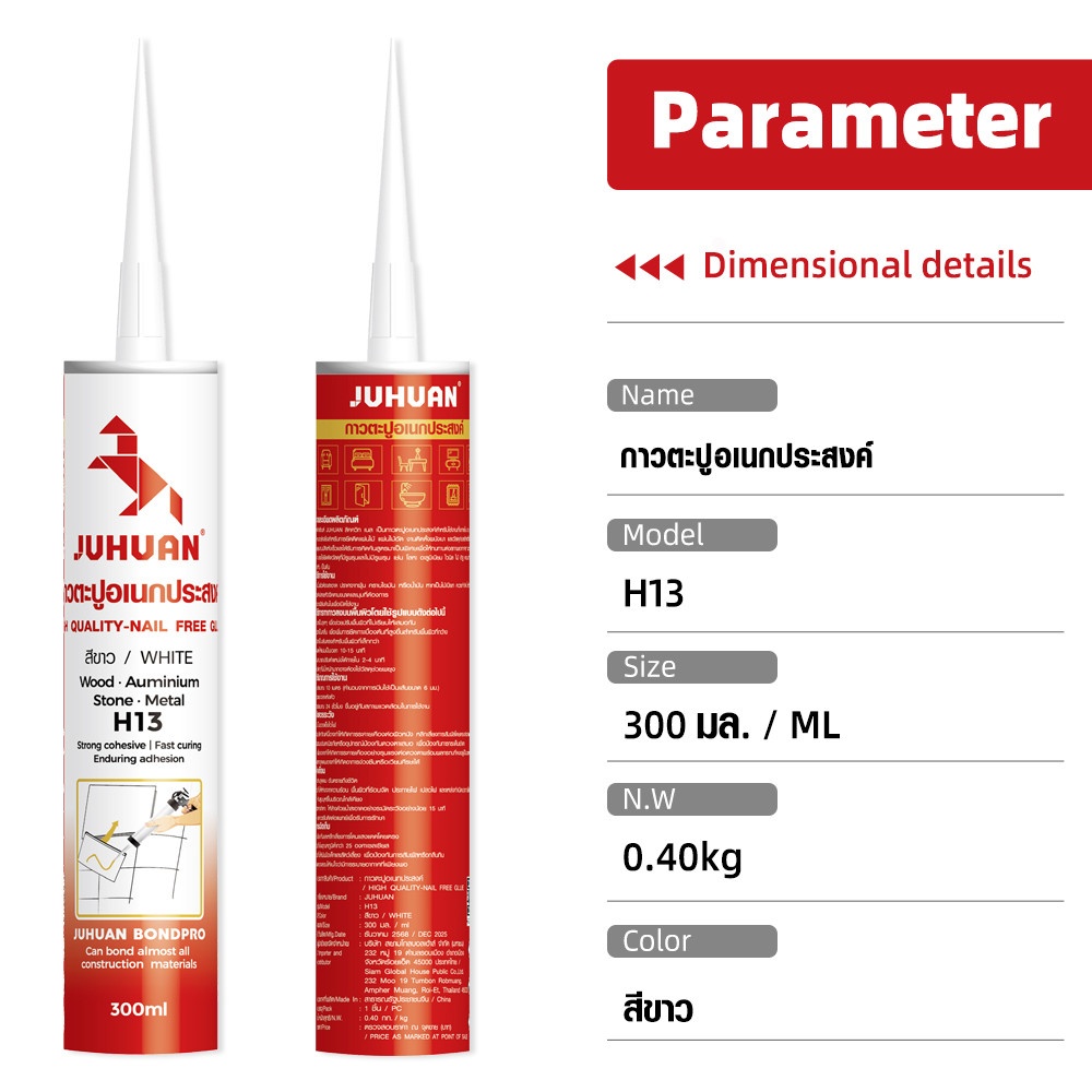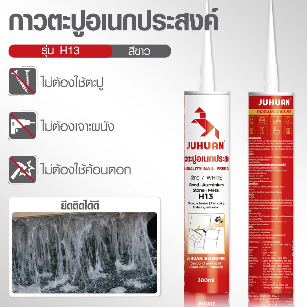 กาวตะปูคุณภาพสูง ออกแบบมาเพื่อทดแทนการตอกตะปูหรือการเจาะผนัง ให้การยึดติดที่แข็งแรง ทนทาน ใช้งานง่าย เพียงบีบ ติด และกด ไม่ต้องใช้อุปกรณ์พิเศษ เหมาะสำหรับงานติดตั้งทั่วไป งานซ่อมแซม และงานตกแต่งบ้าน ช่วยให้งานเสร็จเร็ว สวยงาม และปลอดภัยต่อพื้นผิว