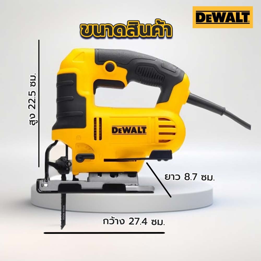 เครื่องเลื่อยจิ๊กซอ จากเเบรนด์ DEWALT กำลังไฟ 650 วัตต์ ผลิตจากวัสดุคุณภาพสูง ทนทานต่อการใช้งาน เครื่องเลื่อยมีขนาดเล็ก เหมาะสำหรับตัดไม้ เหล็ก หรือเจาะรูตรงกลางแผ่นวัสดุที่มีขนาดเล็กได้ ด้วยน้ำหนักที่เบาช่วยให้สะดวกในการควบคุมทิศทาง สามารถตัดได้ตรง และแม่นยำ ทั้งยังปรับองศาการตัดได้ตามต้องการ เพื่อรองรับกับชิ้นงานประเภทต่าง ๆ ได้อย่างลงตัว