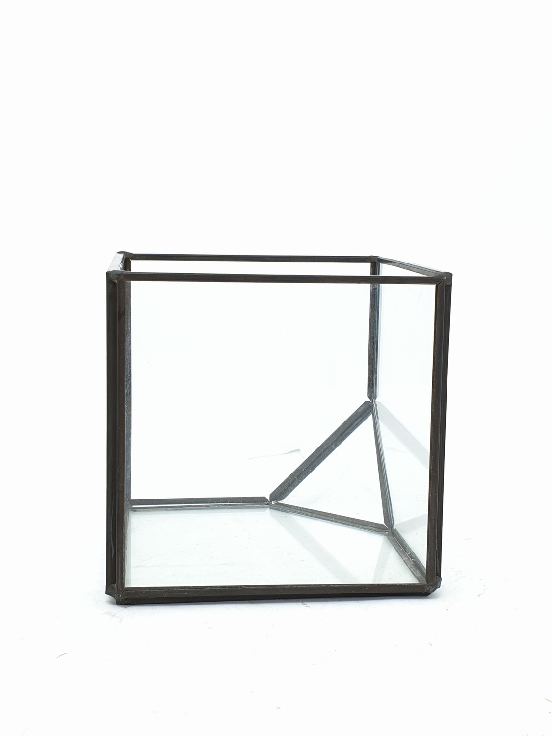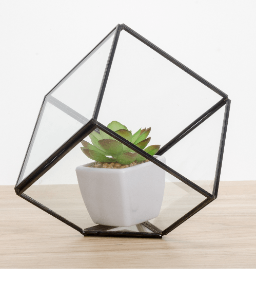 โครงทำมาจากทองแดง กรุด้วยแก้ว แข็งแรง รับน้ำหนักของวัสดุที่ใช้จัดสวนได้ดี ไม่รั่ว ไม่ซึม