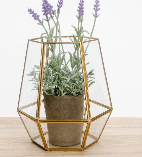 โครงทำมาจากทองแดง กรุด้วยแก้ว แข็งแรง รับน้ำหนักของวัสดุที่ใช้จัดสวนได้ดี ไม่รั่ว ไม่ซึม