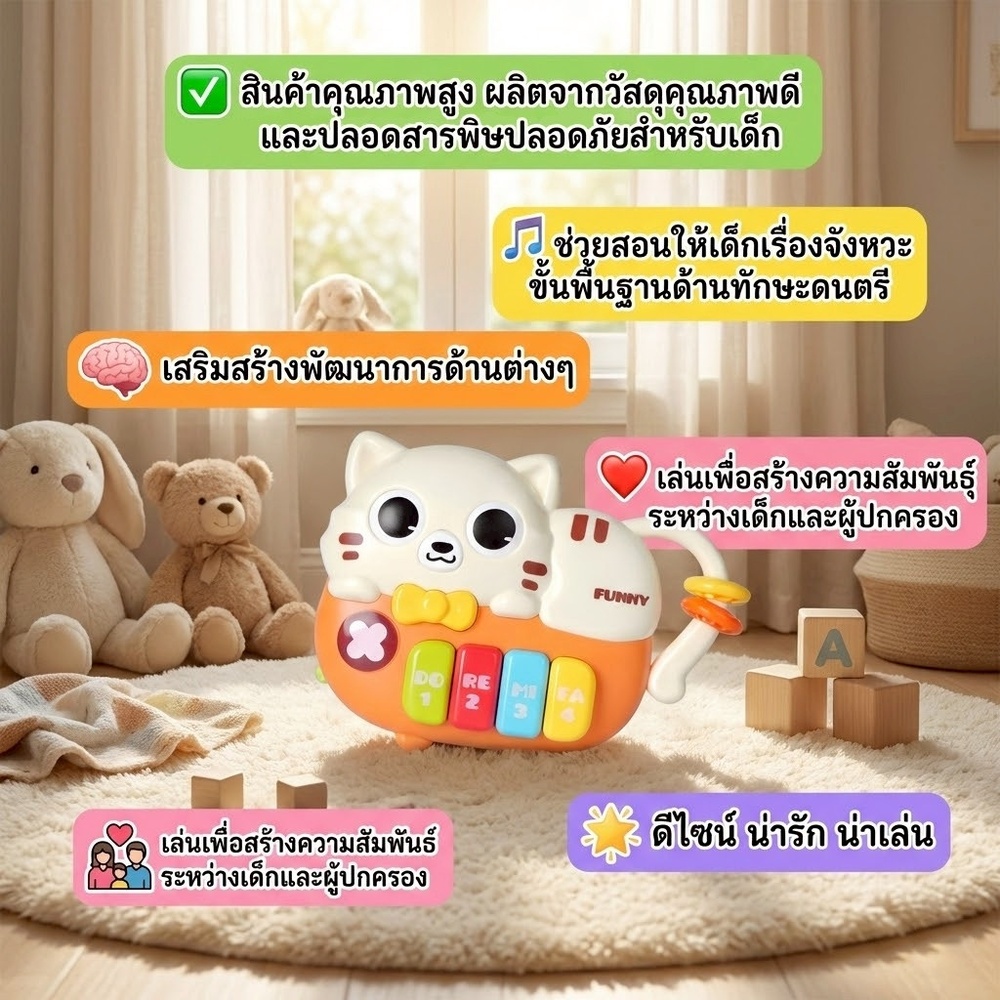TOYS ของเล่นเปียโนแมวเหมียว รุ่น 503-19 ขนาด 19.4x4.7x16.7 ซม. คละสี
