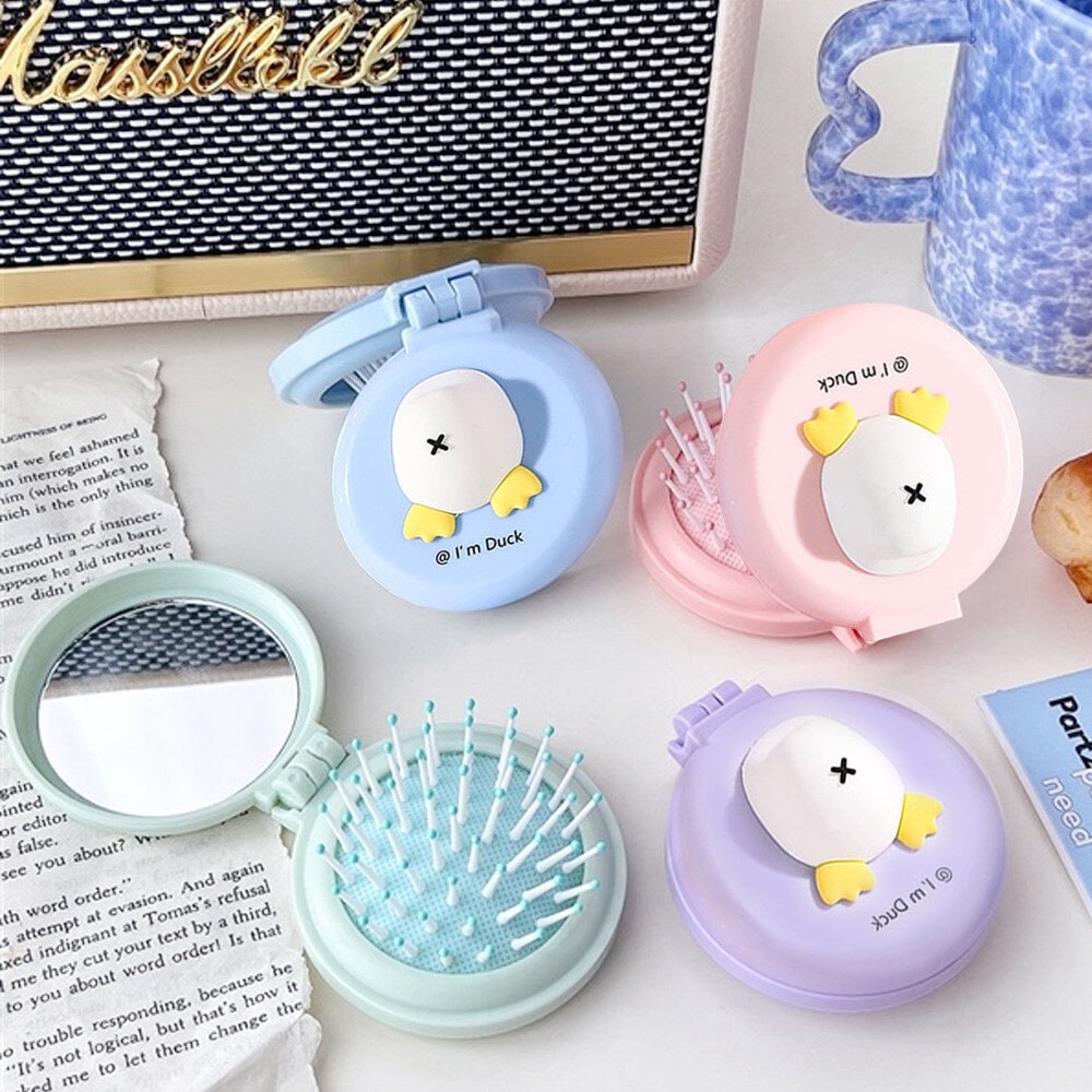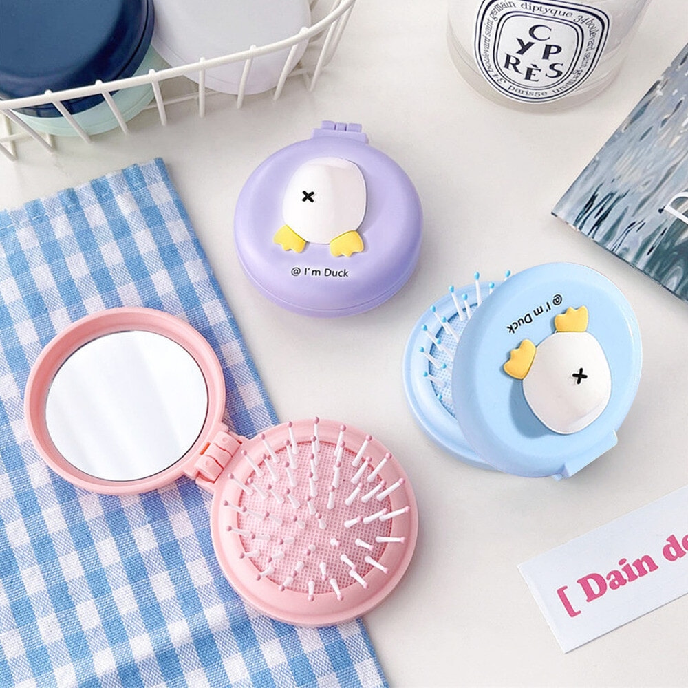 หวีแปรงผมสีสันสดใส พร้อมกระจก สามารถพกพาสะดวกไปได้ทุกที่