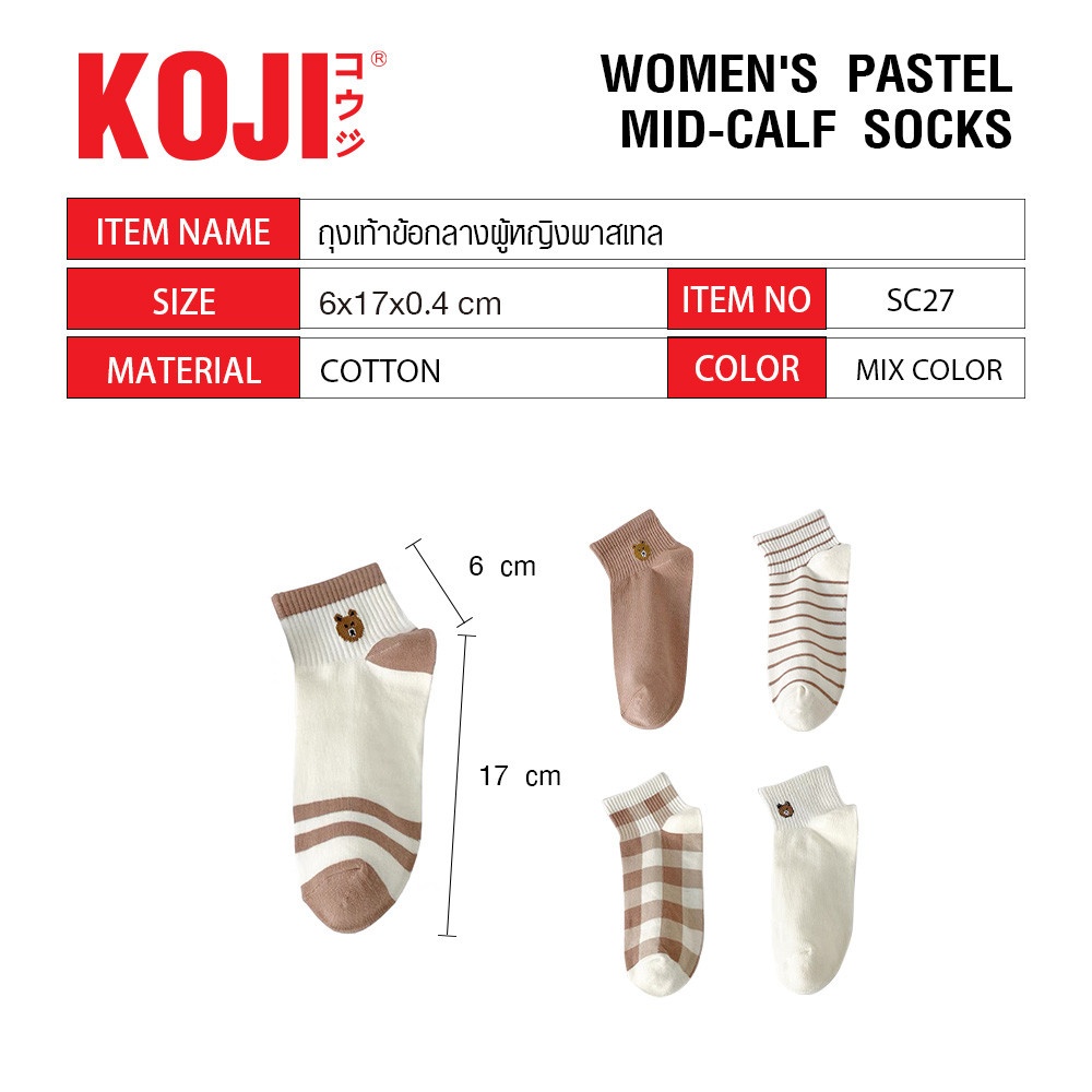 KOJI ถุงเท้าข้อกลางผู้หญิงพาสเทล รุ่นSC27 ขนาด6x17x0.4ซม.คละแบบ