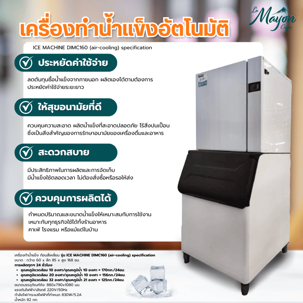 -ลดต้นทุนซื้อน้ำแข็งจากภายนอก ผลิตเองได้ตามต้องการ ประหยัดค่าใช้จ่ายระยะยาว