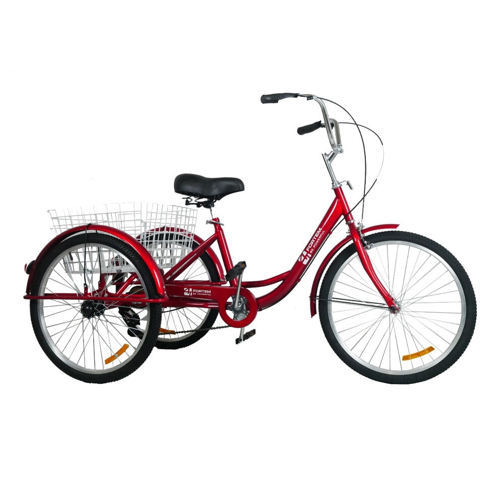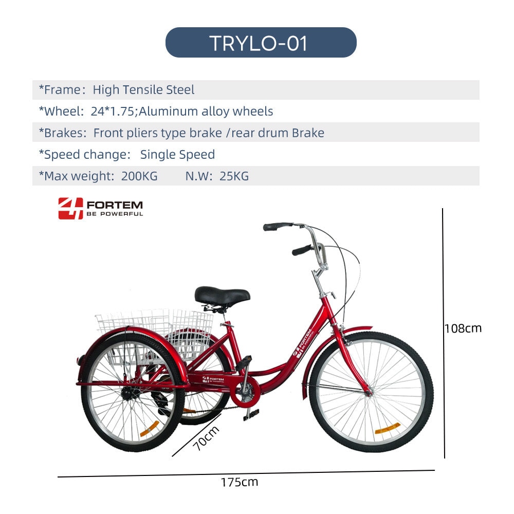 4TEM Trylo-01 จักรยานสามล้อผู้ใหญ่ ขนาด 24 นิ้ว พร้อมตะกร้าหลังขนาดใหญ่ สีแดง