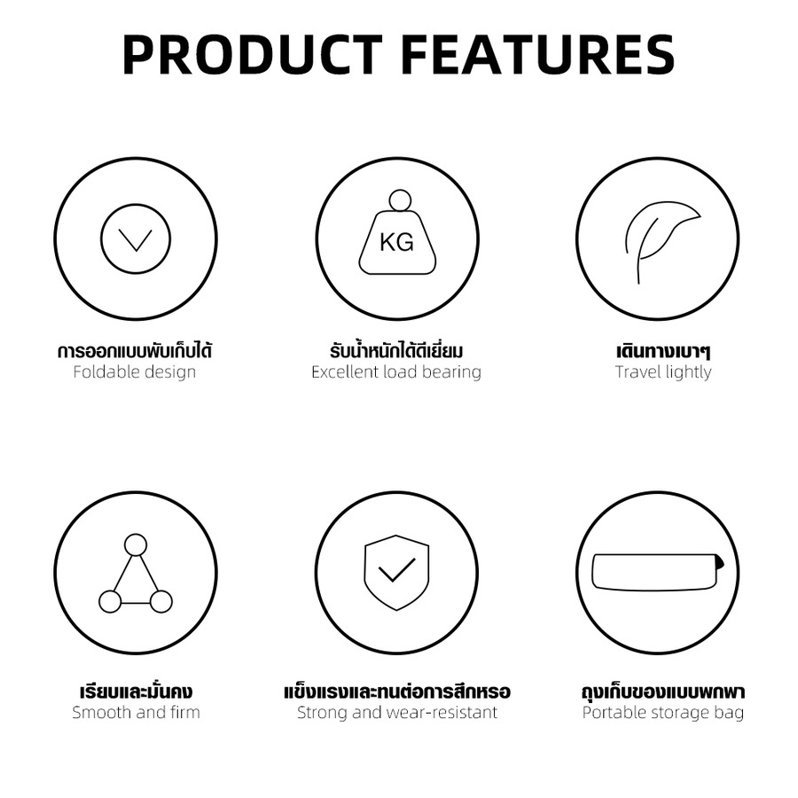 วัสดุการผลิต: ผ้าอ็อกฟอร์ด 600D (600D Oxford Fabric) / ท่อเหล็ก (19mm Iron tube)