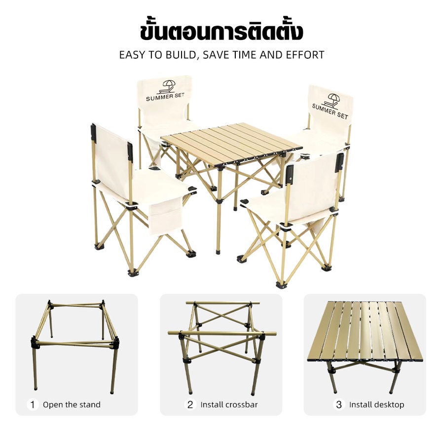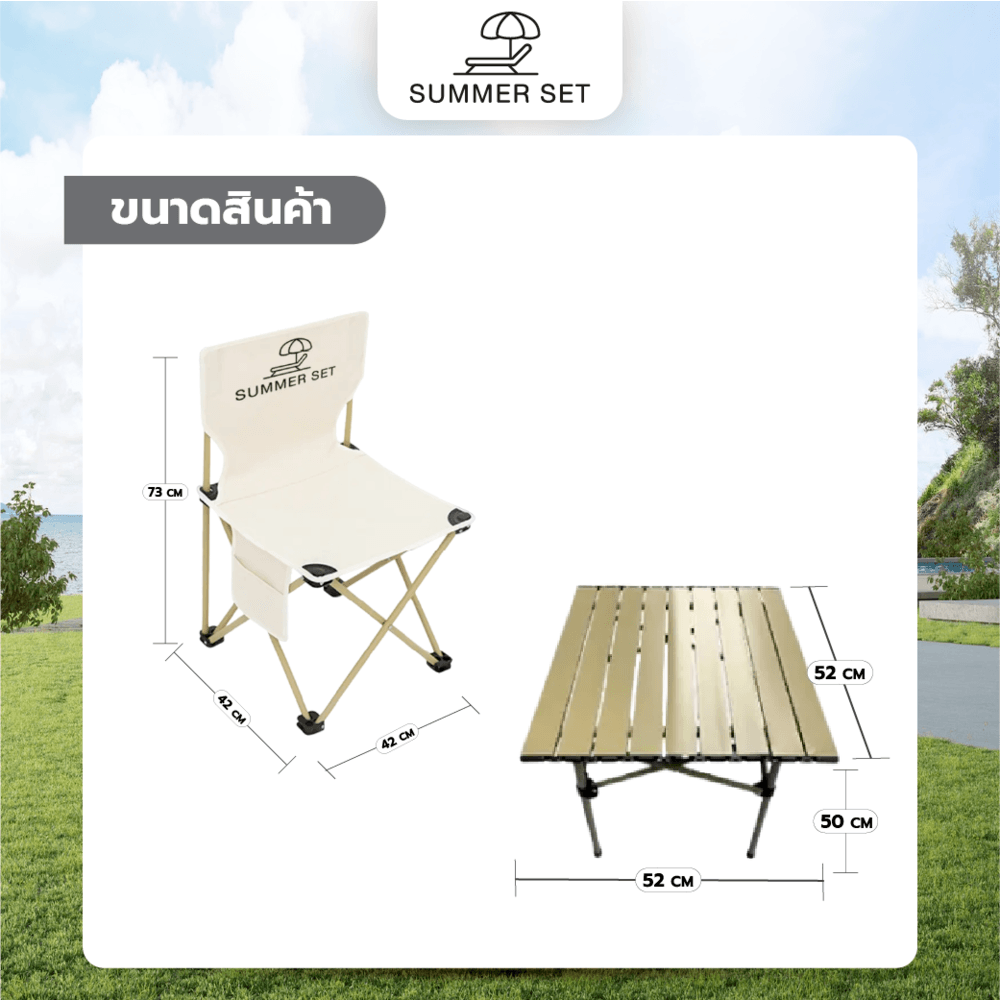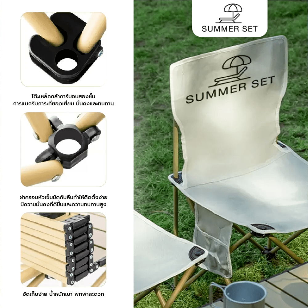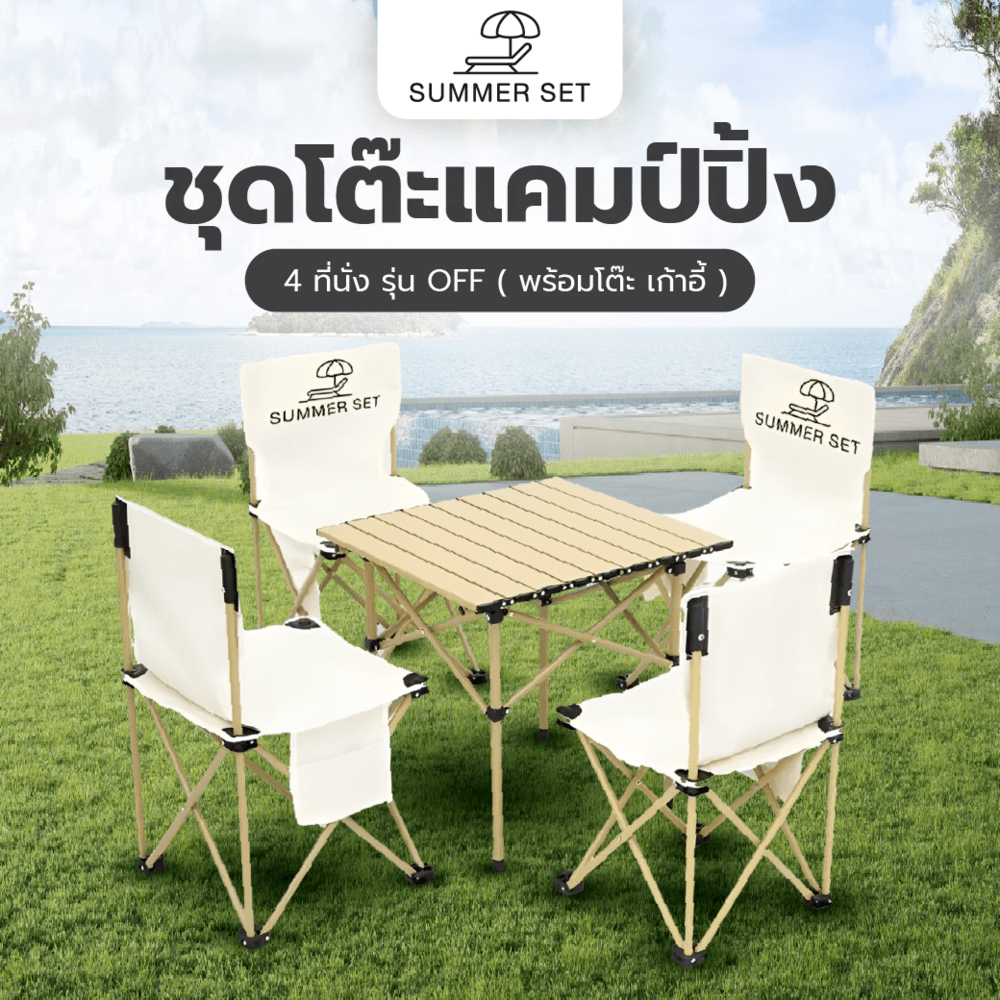 SUMMER SET ชุดโต๊ะแคมป์ปิ้ง 4 ที่นั่ง รุ่น OFF โต๊ะ 52x52x50 ซม. เก้าอี้ 42x42x73 ซม. สีเบจ
