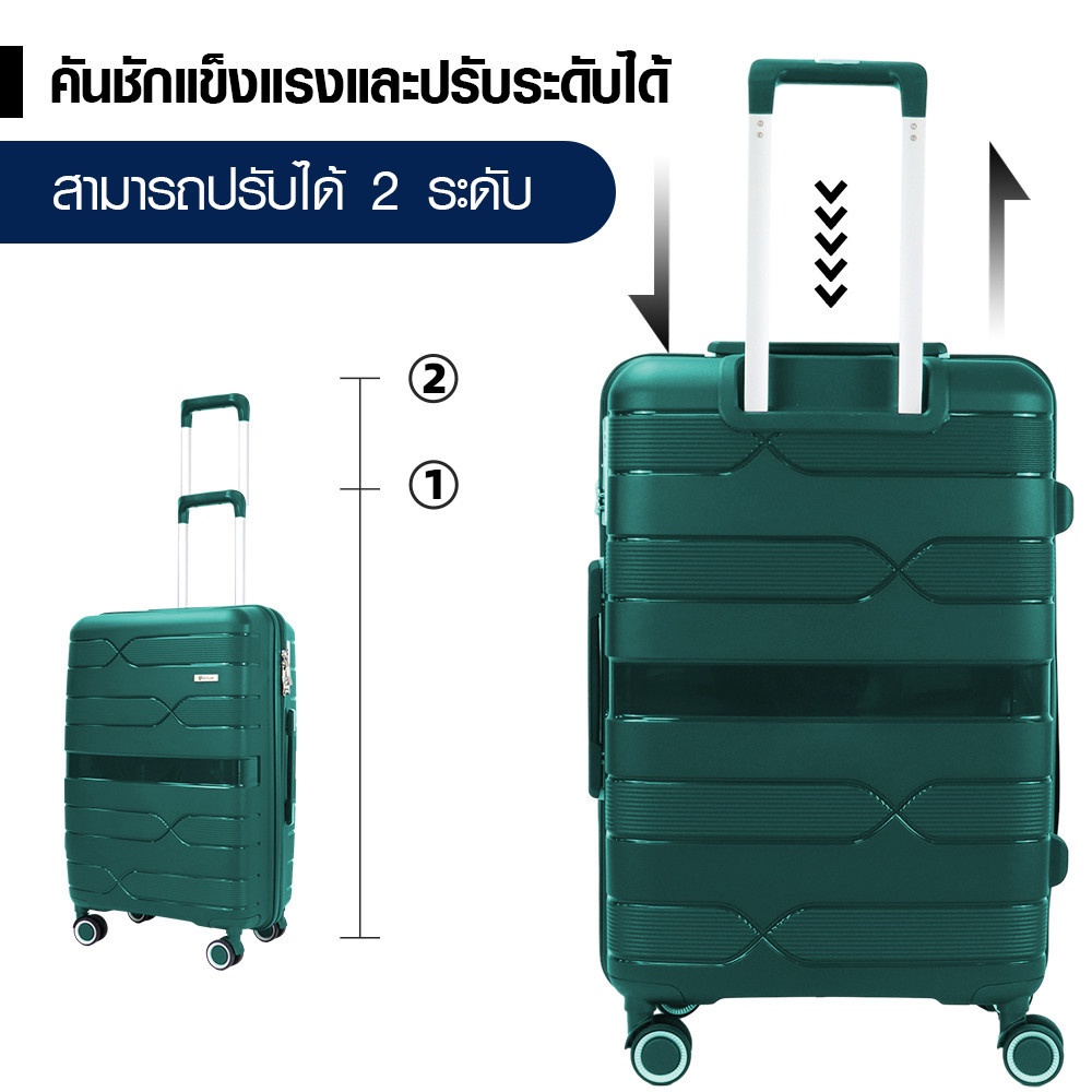 สีเขียวช่วยให้กระเป๋าดูโดดเด่น ทันสมัย และมองหาได้ง่ายบนสายพานรับกระเป๋า ไม่ต้องเสียเวลาหากระเป๋าของตนเอง