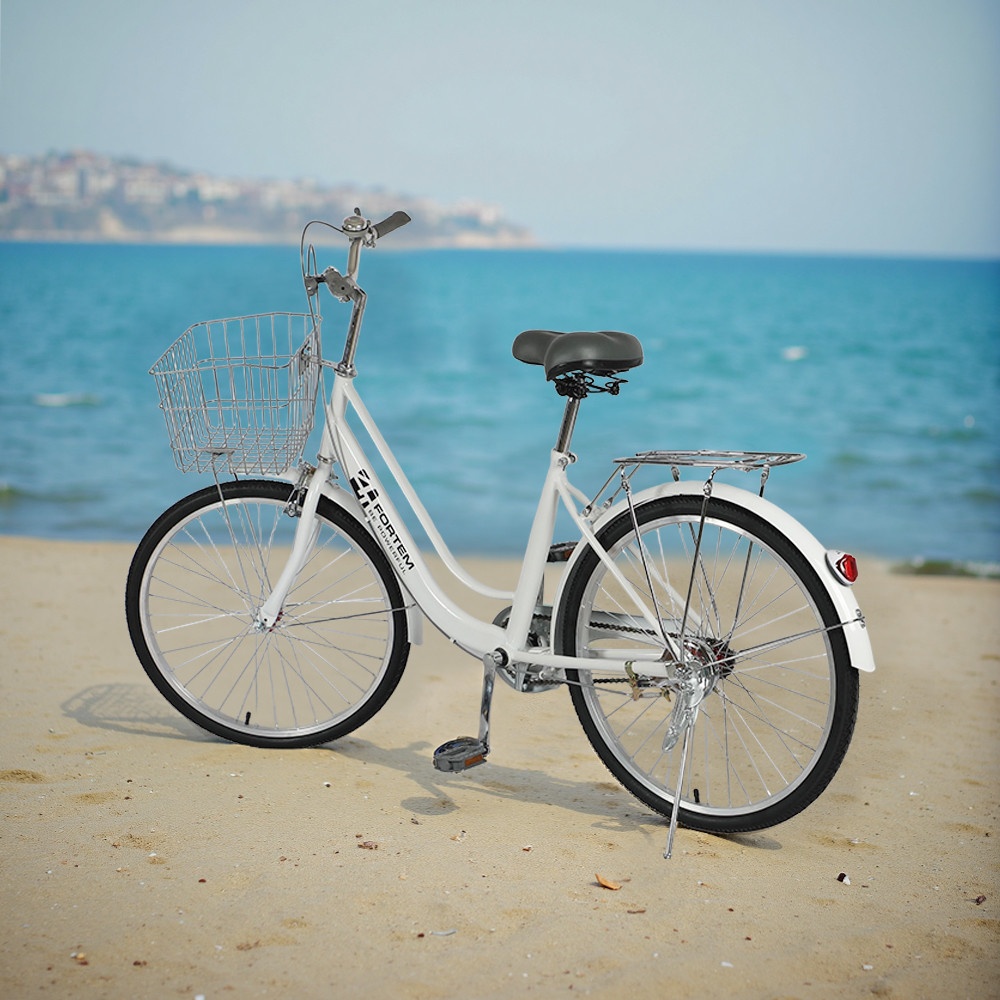FORTEM จักรยานแม่บ้านตะกร้าเหล็ก รุ่นDAWN-05 ขนาด 24นิ้ว สีขาว
