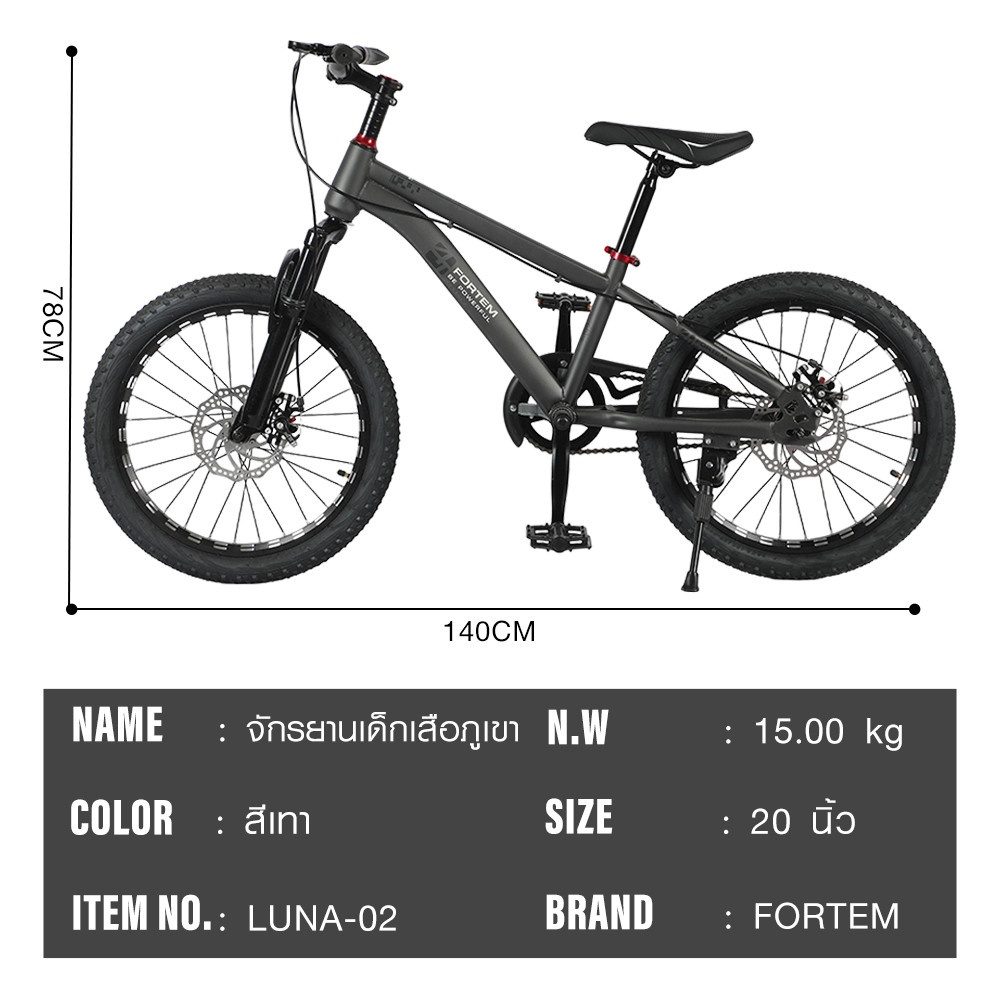 Fortem จักรยานเด็กเสือภูเขา รุ่น Luna-02 ขนาด 20 นิ้ว สีเทา