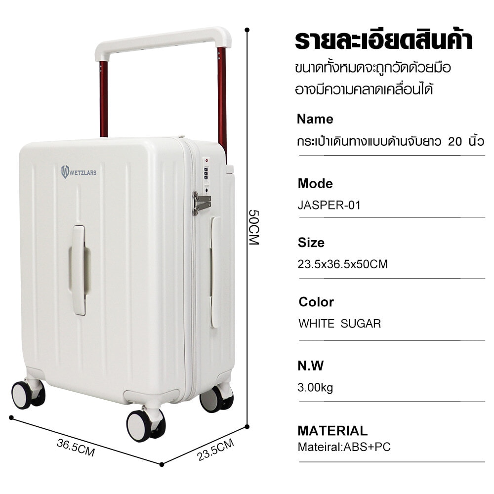 WETZLARS กระเป๋าเดินทางแบบด้านจับยาว ขนาด 20 นิ้ว รุ่น Amber-01 ขนาด 23.50x36.50x50 ซม. สีขาวไวท์ชูก้า