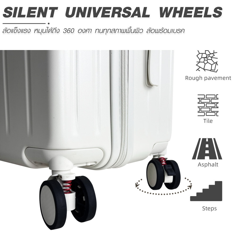 ล้อกระเป๋าออกแบบให้หมุนได้ 360 องศา เคลื่อนที่ได้อย่างคล่องตัว แข็งแรงและทนทาน รองรับทุกสภาพพื้นผิวได้อย่างมั่นใจ