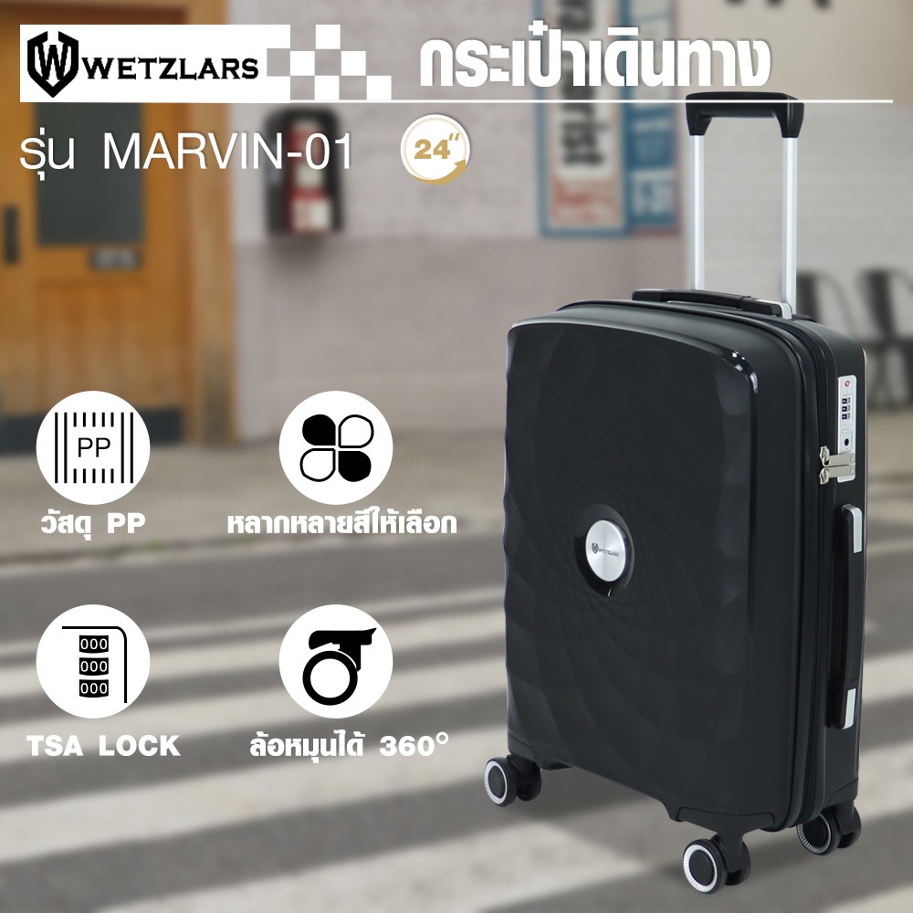 WETZLARS กระเป๋าเดินทาง ขนาด 24 นิ้ว รุ่น Marvin-01 ขนาด 26x42x65 ซม. สีดำเมทัล