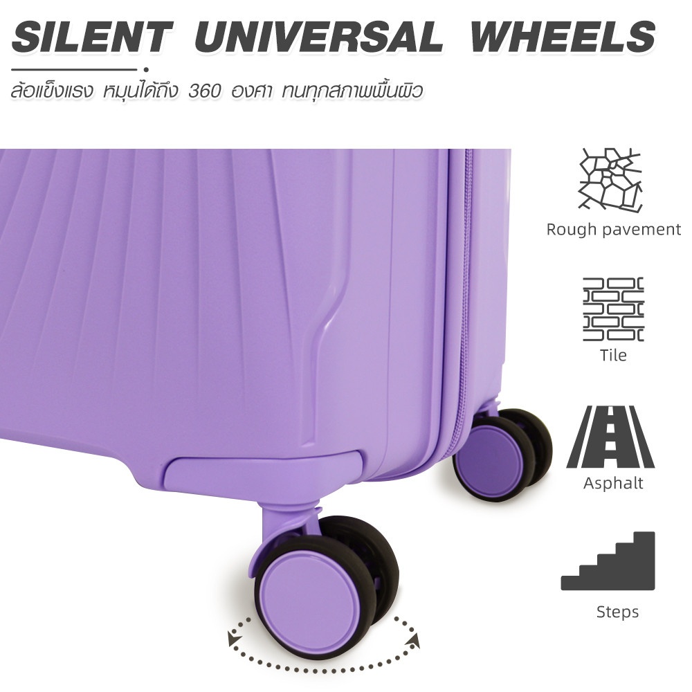กระเป๋าเดินทาง WETZLARS Winter-02 ขนาด 24 นิ้ว คือเพื่อนร่วมเดินทางที่สมบูรณ์แบบสำหรับนักเดินทางยุคใหม่ที่ต้องการทั้งสไตล์ ความทนทาน และความสะดวกสบาย ผลิตจากวัสดุ PP (โพลิโพรพีลีน) คุณภาพสูง กระเป๋าแบบฮาร์ดเชลล์นี้มีน้ำหนักเบาแต่แข็งแรง ช่วยปกป้องสัมภาระของคุณตลอดการเดินทาง และด้วยสีม่วงโอโรล่า ทำให้กระเป๋าดูพรีเมียม อีกทั้งยังทนต่อรอยขีดข่วนและการใช้งานบ่อย ๆ