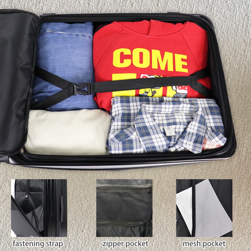 ภายในกระเป๋ากว้างขวาง มาพร้อม สายรัดครอส เพื่อยึดเสื้อผ้าให้อยู่เรียบร้อย และ ช่องซิปภายใน สำหรับเก็บของชิ้นเล็ก เช่น เครื่องสำอาง อุปกรณ์อิเล็กทรอนิกส์ หรือเอกสารสำคัญ ทำให้สัมภาระเป็นระเบียบและง่ายต่อการเข้าถึง
