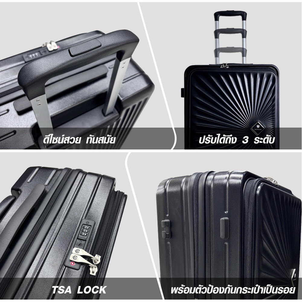 กระเป๋าเดินทาง WETZLARS Blossom-02 ขนาด 20 นิ้ว เป็นตัวเลือกที่สมบูรณ์แบบสำหรับนักเดินทางยุคใหม่ที่ต้องการทั้งสไตล์ ความสะดวกสบาย และความทนทาน ผลิตจากวัสดุ ABS+PC (Acrylonitrile Butadiene Styrene + Polycarbonate) คุณภาพสูง ทำให้กระเป๋ามีความแข็งแรง ทนทานต่อรอยขีดข่วน น้ำหนักเบา และยังสามารถปกป้องสัมภาระของคุณได้เป็นอย่างดี สี ดำมิดไนท์ ให้ความรู้สึกเรียบหรูและทันสมัย เหมาะสำหรับทั้งการเดินทางท่องเที่ยวและธุรกิจ
