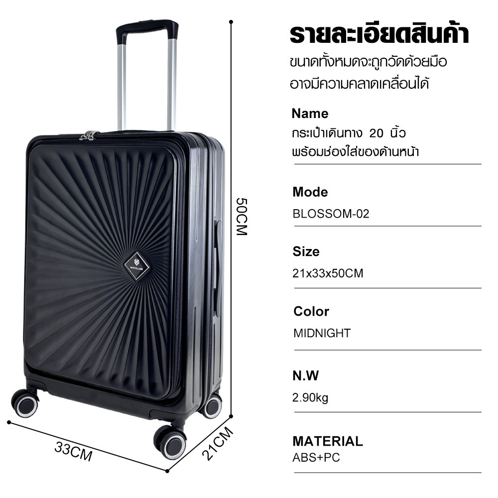 WETZLARS กระเป๋าเดินทาง ขนาด 20 นิ้ว พร้อมช่องใส่ของด้านหน้า รุ่น Blossom-02 ขนาด 21x33x50 ซม. สีดำมิดไนท์