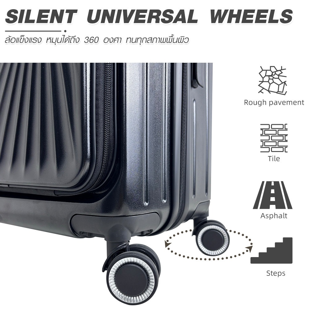 วัสดุ ABS+PC แข็งแรง น้ำหนักเบา ทำให้กระเป๋าทนต่อความร้อน ความชื้น และแรงกระแทก ทำความสะอาดง่าย เพียงเช็ดด้วยผ้าชุบน้ำหมาด ๆ ก็กลับมาสะอาดเหมือนใหม่ เหมาะสำหรับนักธุรกิจและนักท่องเที่ยวที่ต้องการกระเป๋าที่ทนทาน ใช้งานสะดวก และดูดีทุกการเดินทาง