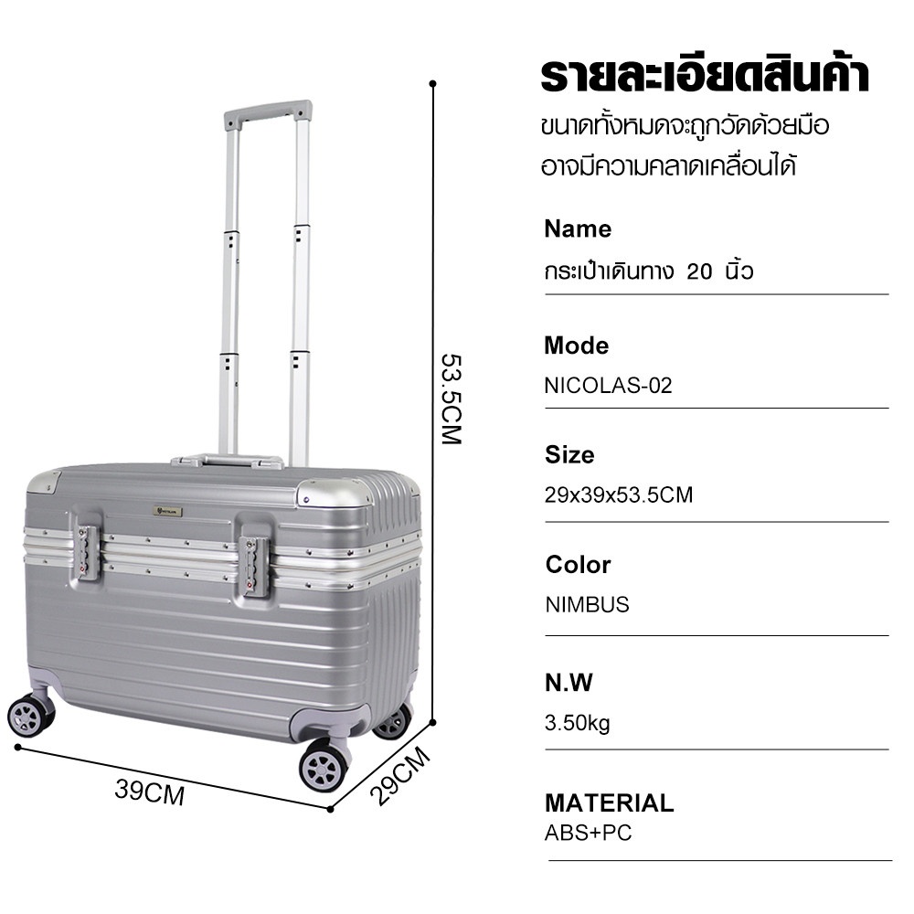 ถูกออกแบบมาเพื่อนักเดินทางยุคใหม่ ด้วยดีไซน์ที่เน้นความเรียบหรู ทันสมัย และฟังก์ชันการใช้งานที่ครบครัน ขนาด 20 นิ้ว ถือเป็นขนาดมาตรฐานที่สามารถนำขึ้นเครื่องบิน (Carry-on Size) ได้ ทำให้คุณไม่ต้องเสียเวลาต่อคิวเช็คอินกระเป๋า หรือรอรับกระเป๋าที่สายพาน ซึ่งช่วยประหยัดเวลาและทำให้การเดินทางเป็นไปอย่างราบรื่นมากยิ่งขึ้นค่ะ ด้วยมิติขนาด 29x39x53.50 ซม. ทำให้มั่นใจได้ว่าสามารถจัดเก็บสัมภาระได้อย่างเพียงพอสำหรับทริปสั้นๆ พร้อมทั้งยังคล่องตัวในการเคลื่อนย้ายในพื้นที่จำกัด เช่น ทางเดินบนเครื่องบิน หรือช่องเก็บของเหนือศีรษะ