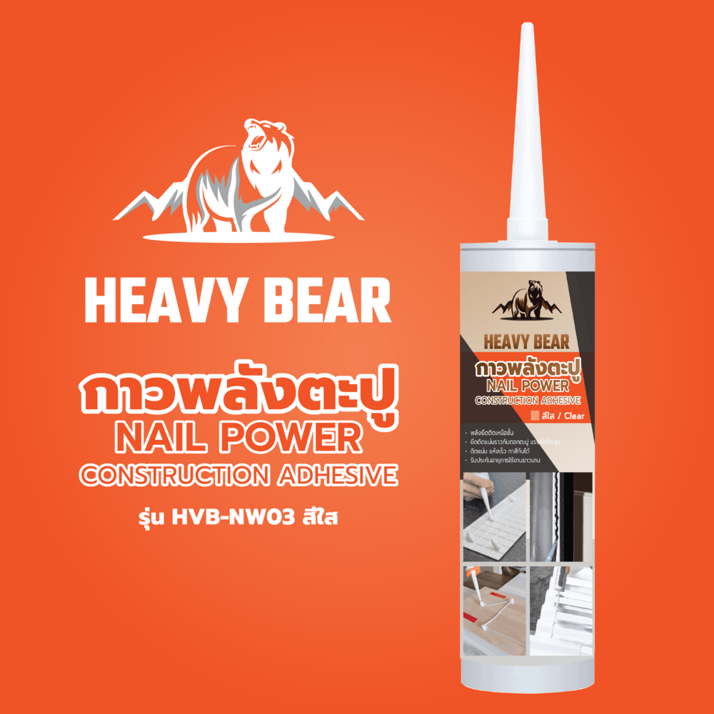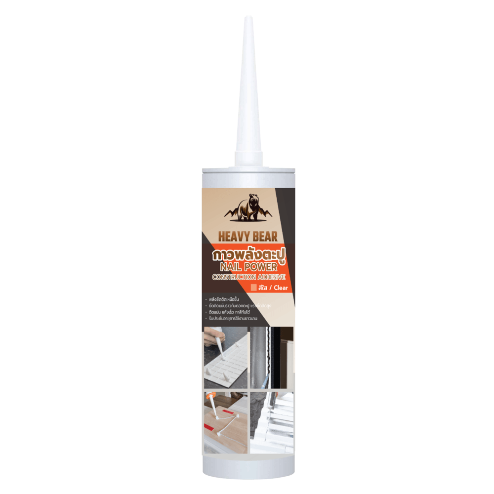 กาวพลังตะปูอเนกประสงค์คุณภาพสูง Heavy Bear ติดแน่น แห้งไว ใช้สำหรับยึดติดวัสดุต่าง ๆ ในงานก่อสร้างและซ่อมบำรุง ติดได้ดีกับวัสดุหลายประเภท เช่น ไม้อัด ปูน คอนกรีต ไฟเบอร์ซีเมนต์ กระเบื้อง ให้แรงยึดเกาะทั้งในแนวราบและแนวตั้ง สามารถใช้ได้ทั้งภายในและภายนอก ปลอดภัย เป็นมิตรกับสิ่งแวดล้อม ทนทานทุกสภาพอากาศ