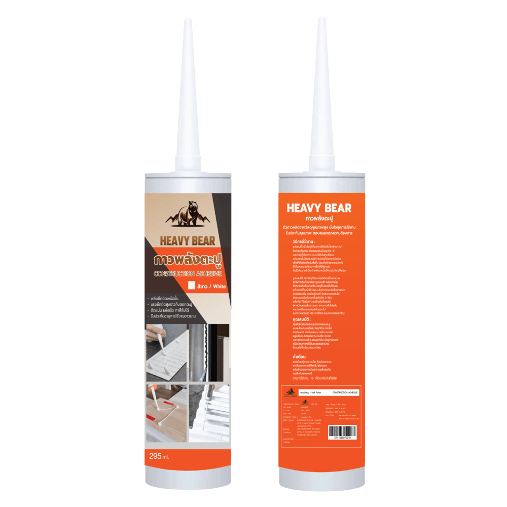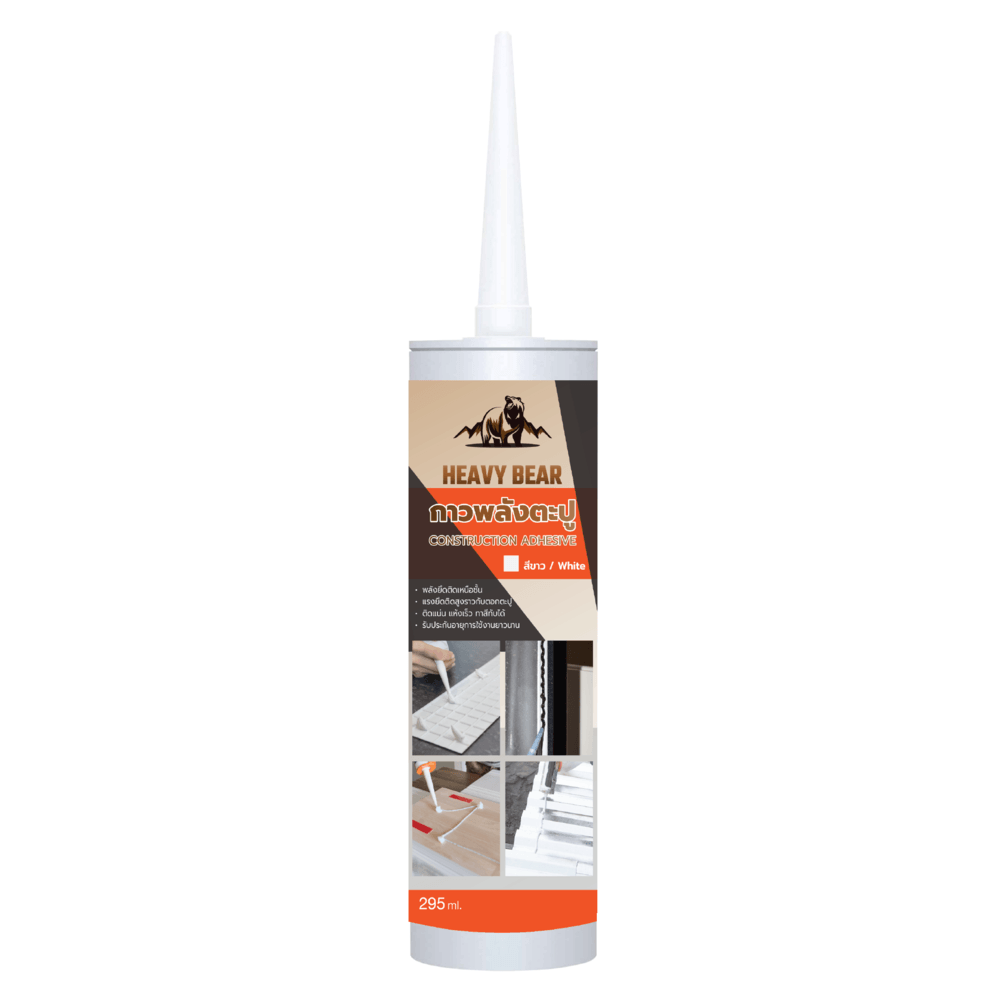 กาวพลังตะปูอเนกประสงค์คุณภาพสูง Heavy Bear ติดแน่น แห้งไว ใช้สำหรับยึดติดวัสดุต่าง ๆ ในงานก่อสร้างและซ่อมบำรุง ติดได้ดีกับวัสดุหลายประเภท เช่น ไม้อัด ปูน คอนกรีต ไฟเบอร์ซีเมนต์ กระเบื้อง ให้แรงยึดเกาะทั้งในแนวราบและแนวตั้ง สามารถใช้ได้ทั้งภายในและภายนอก ปลอดภัย เป็นมิตรกับสิ่งแวดล้อม ทนทานทุกสภาพอากาศ