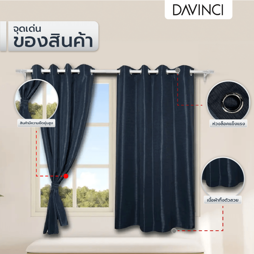 วัสดุคุณภาพสูง: ผ้าม่าน DAVINCI ผลิตจากผ้าที่ทนทาน มีหลากหลายชนิดให้เลือก เช่น ผ้าฝ้าย ผ้าลินิน และผ้าโพลีเอสเตอร์ ทำให้สามารถเลือกให้เหมาะกับการใช้งานและสไตล์ของห้องได้