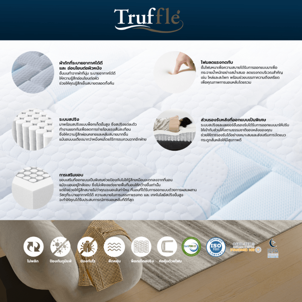 เป็นตัวเลือกที่เหมาะสำหรับผู้ที่ต้องการที่นอนที่มีคุณภาพสูง รองรับสรีระได้ดี ลดแรงกดทับ และช่วยให้นอนหลับได้อย่างสบาย ด้วยระบบสปริงแยกอิสระ ชั้นโฟมที่ออกแบบมาเพื่อความนุ่มสบาย และผ้าหุ้มที่ระบายอากาศได้ดี นอกจากนี้ ยังมีความแข็งแรงทนทาน และผ่านมาตรฐานระดับสากล จึงมั่นใจได้ว่าเป็นที่นอนที่ตอบโจทย์ทุกความต้องการของผู้ใช้