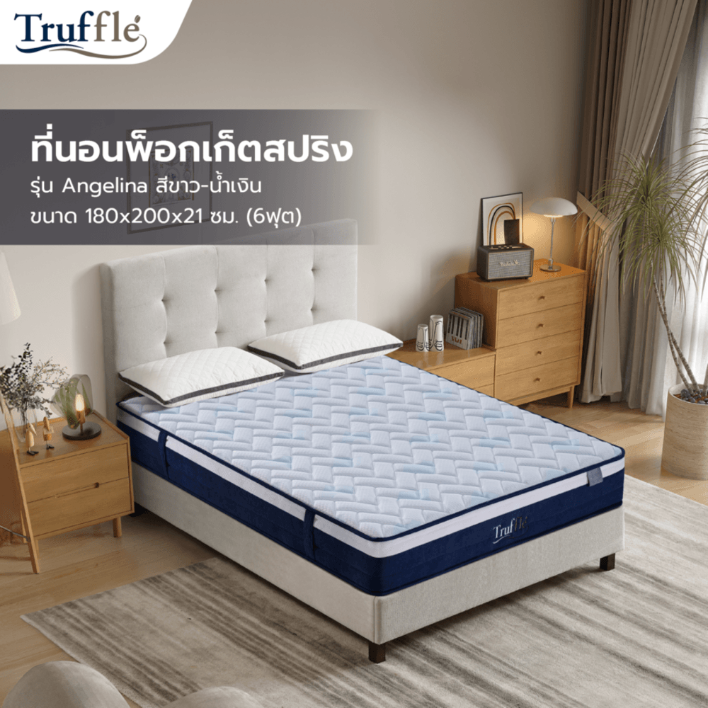 ที่นอน Truffle รุ่น Angelina 6 ฟุต ขนาด: 180 x 200 x 21 ซม. สีขาว-น้ำเงิน