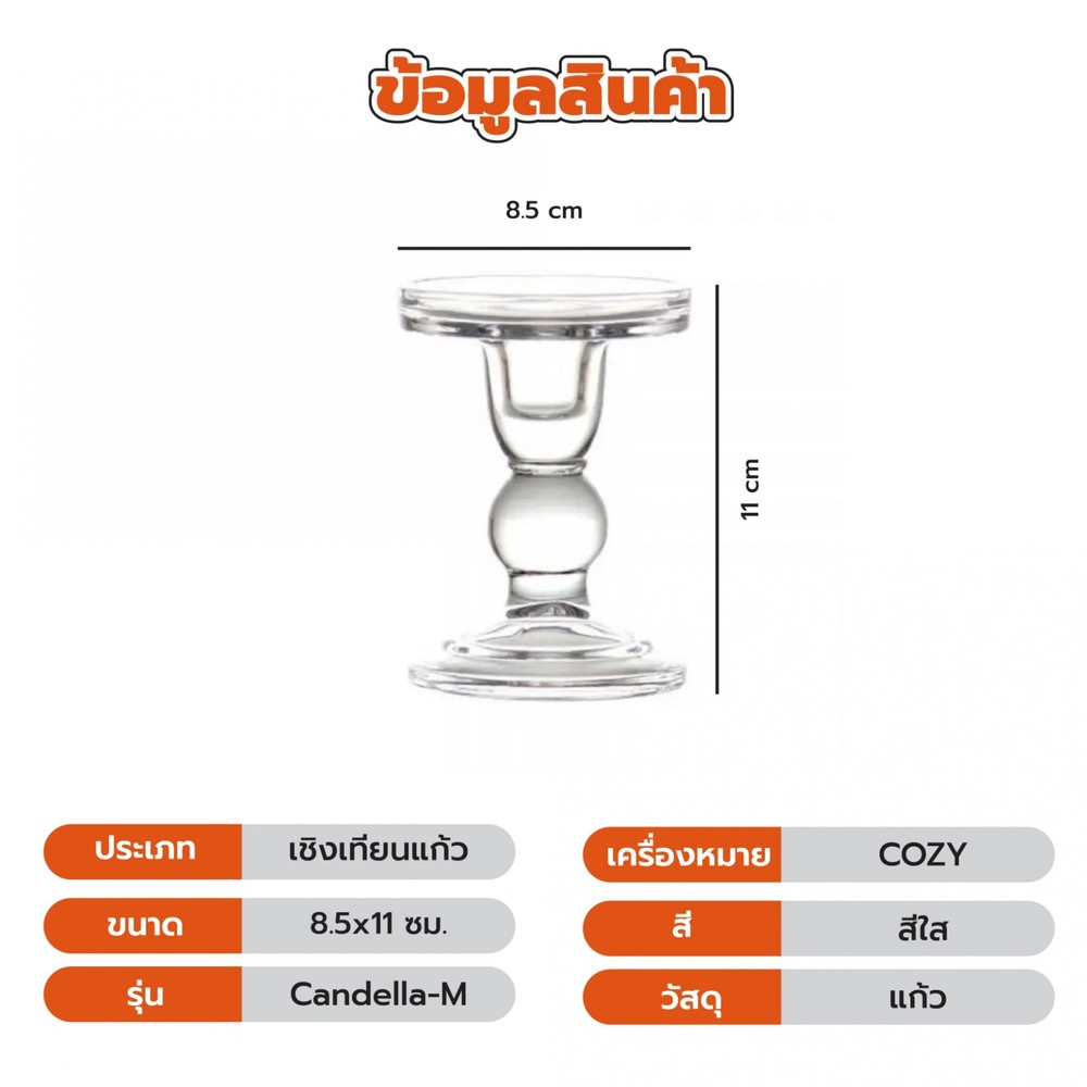 เชิงเทียวแก้ว ขนาด 8.5x11ซม. ผลิตจากแก้วคุณภาพดี