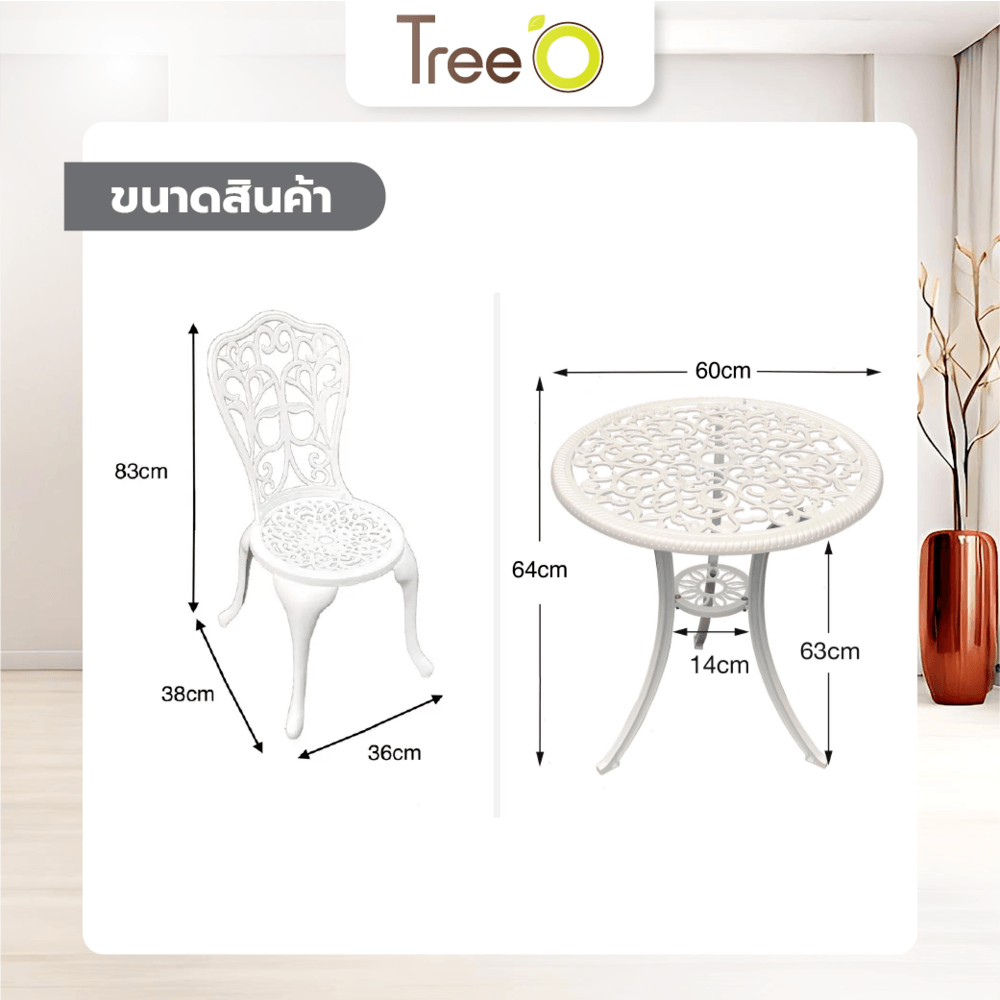 TREE O ชุดโต๊ะสนาม 2ที่นั่ง XG1020 สีขาว