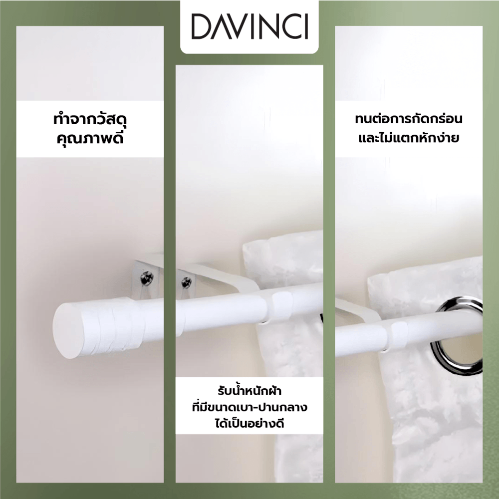 ตัวราวผลิตจากเหล็กพ่นสี หัวราวผลิตจากอะลูมิเนียมที่มีคุณภาพ แข็งแรง ทนต่อการกัดกร่อนและไม่แตกหักง่าย