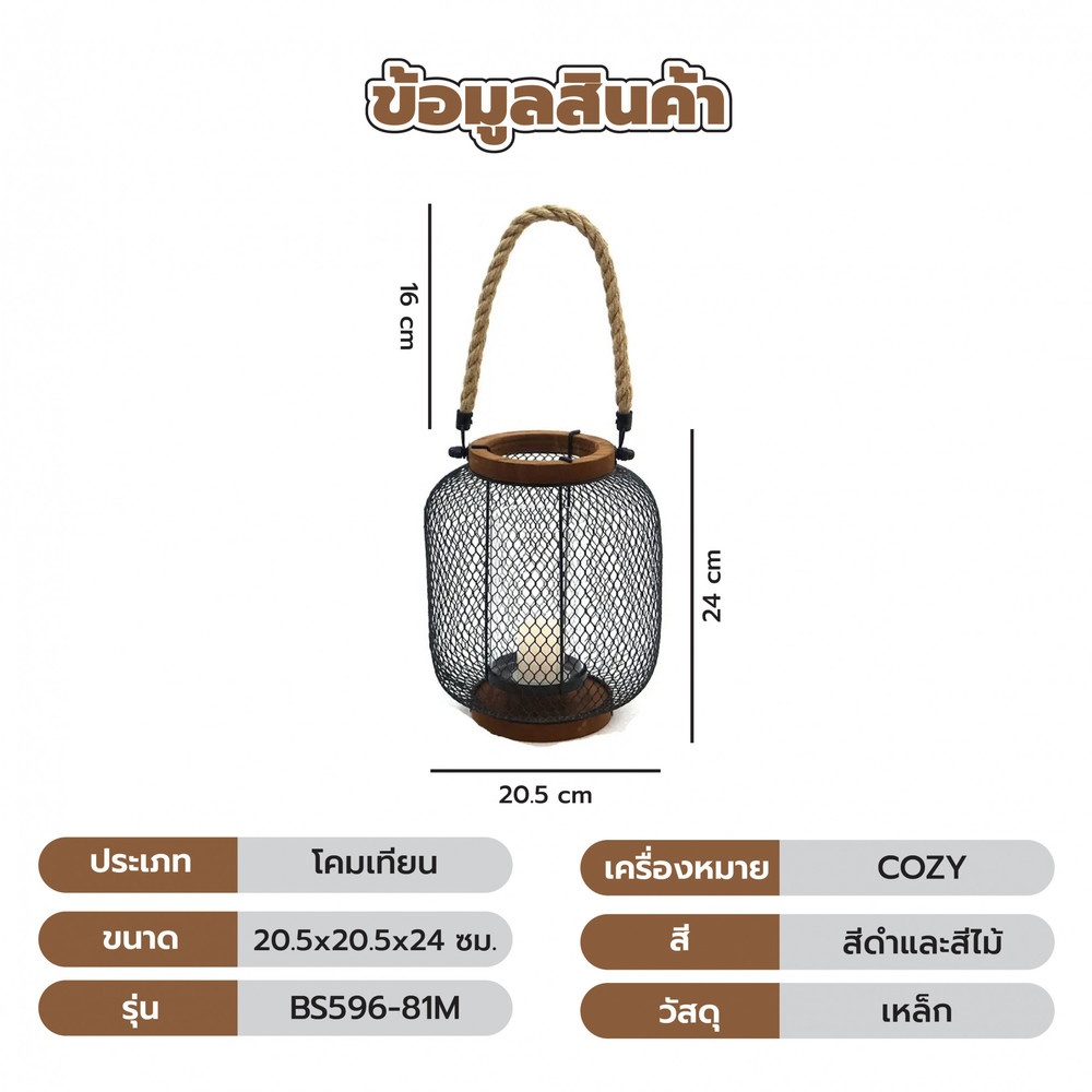COZY โคมเทียน ขนาด 20.5x20.5x24ซม. รุ่น BS596-81M สีดำ+สีไม้