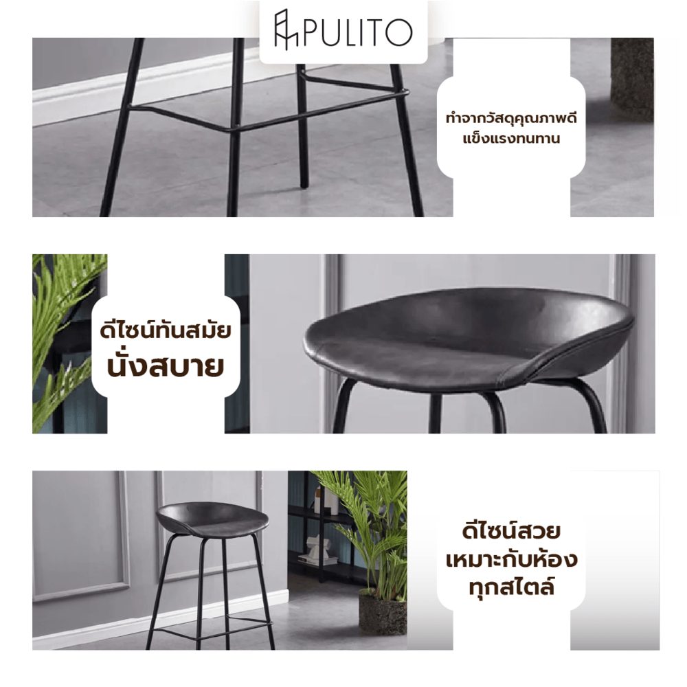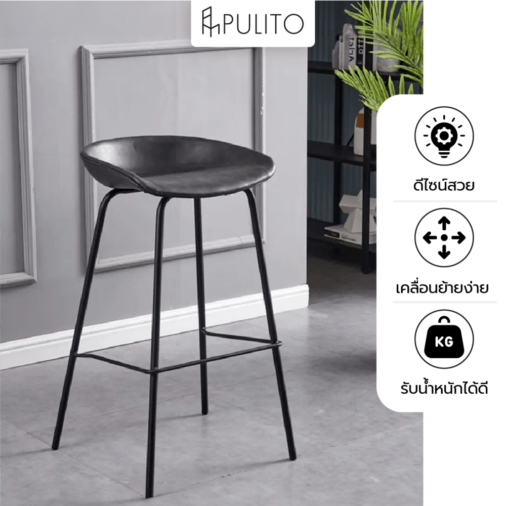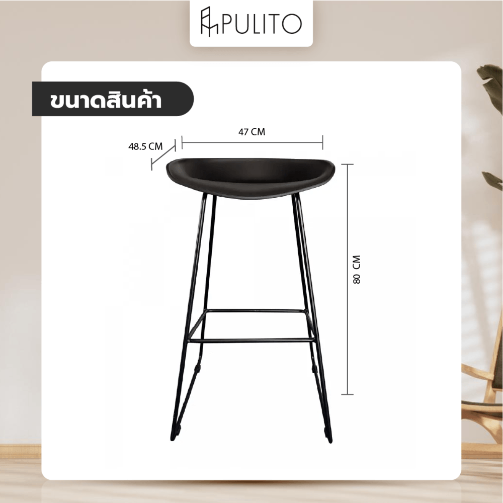 PULITO สตูลสูง ขาเหล็ก รุ่น DT1280BK ขนาด 47x48.5x80 ซม. สีดำ