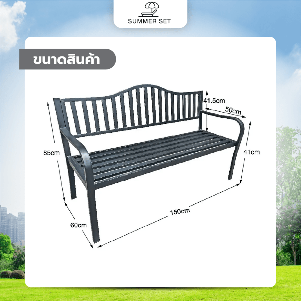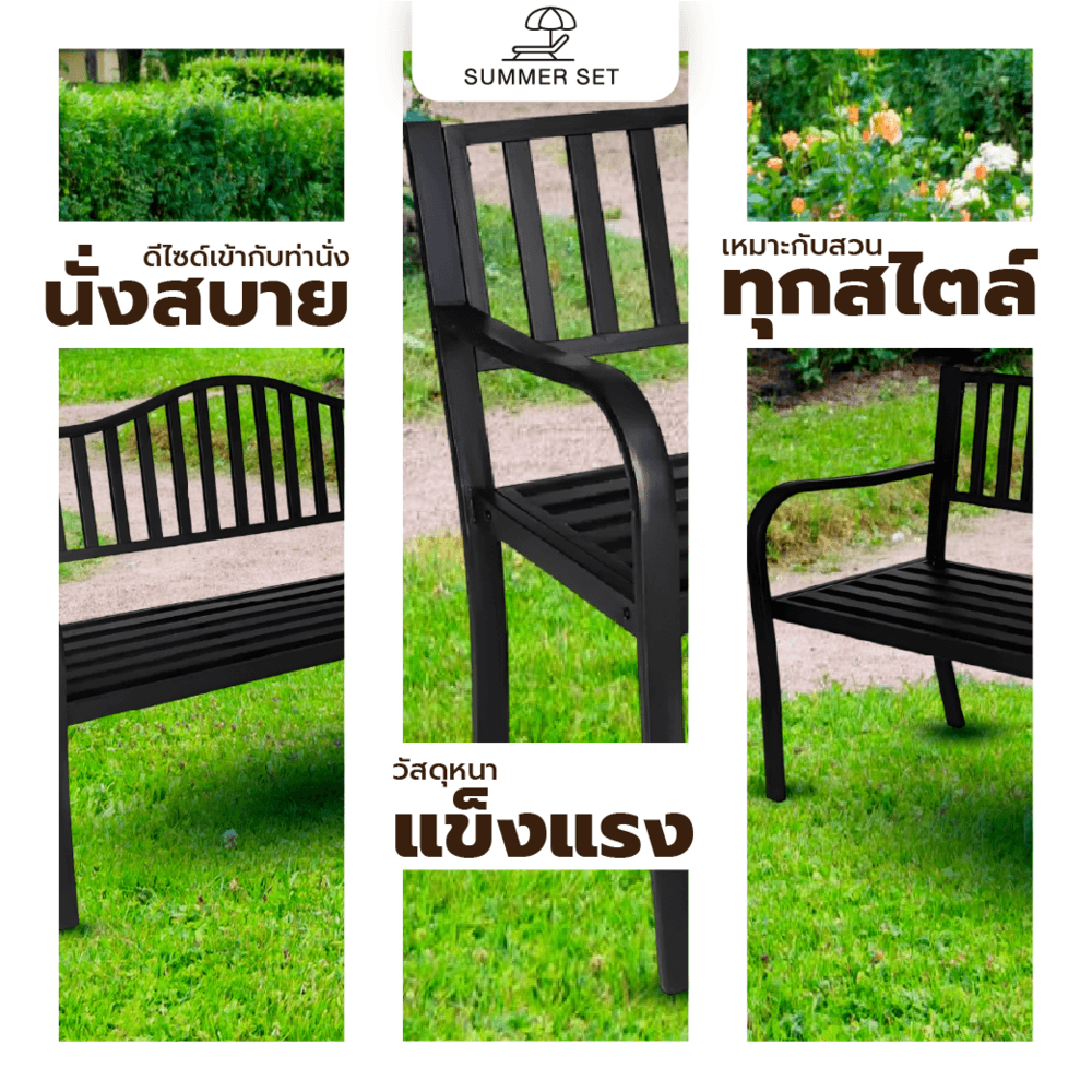 SUMMER SET ม้านั่งสนามเหล็ก รุ่น XG213B ขนาด 150x60x85ซม. สีดำ