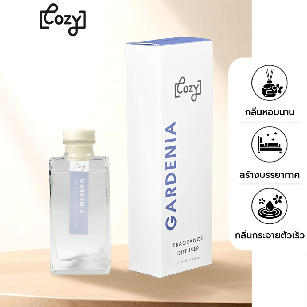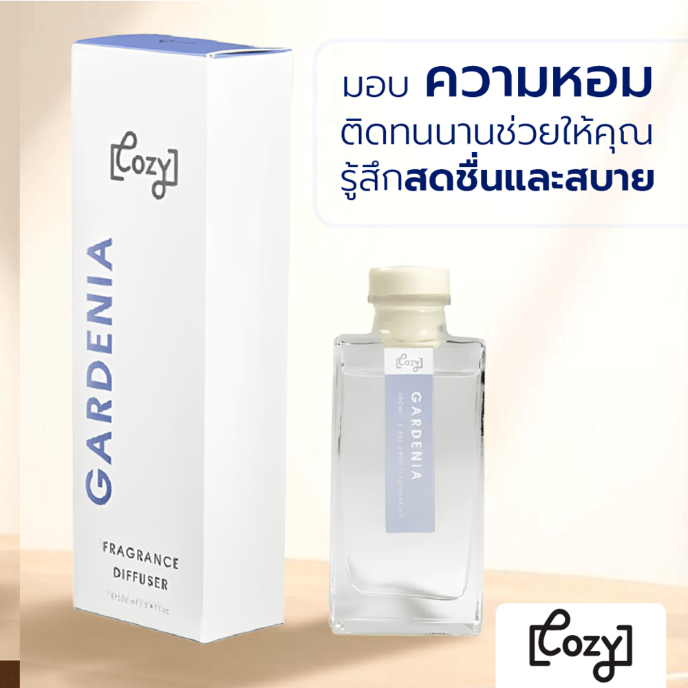 ก้านกระจายความหอม จากแบรนด์ COZY มาพร้อมน้ำหอมกลิ่น Gardenia ให้คุณรู้สึกผ่อนคลายสบายอารมณ์ มาพร้อมกลิ่นหอมติดทนนาน ช่วยปรับบรรยากาศภายในห้องให้คุณรู้สึกผ่อนคลาย คลายความเมื่อยล้า หลังจากเหนื่อยจากการทำงาน
