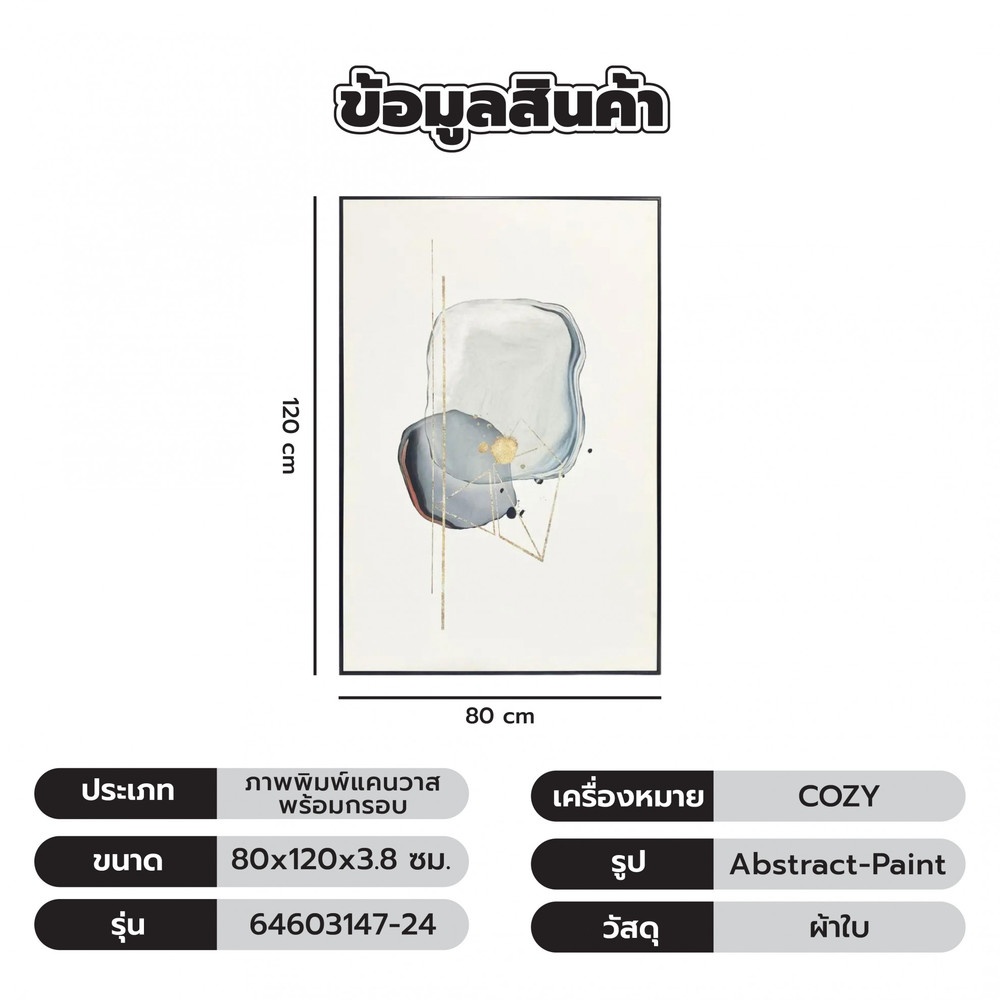 COZY ภาพพิมพ์แคนวาสพร้อมกรอบ Abstract-Paint รุ่น 64603147-24 ขนาด 80x120ซม.