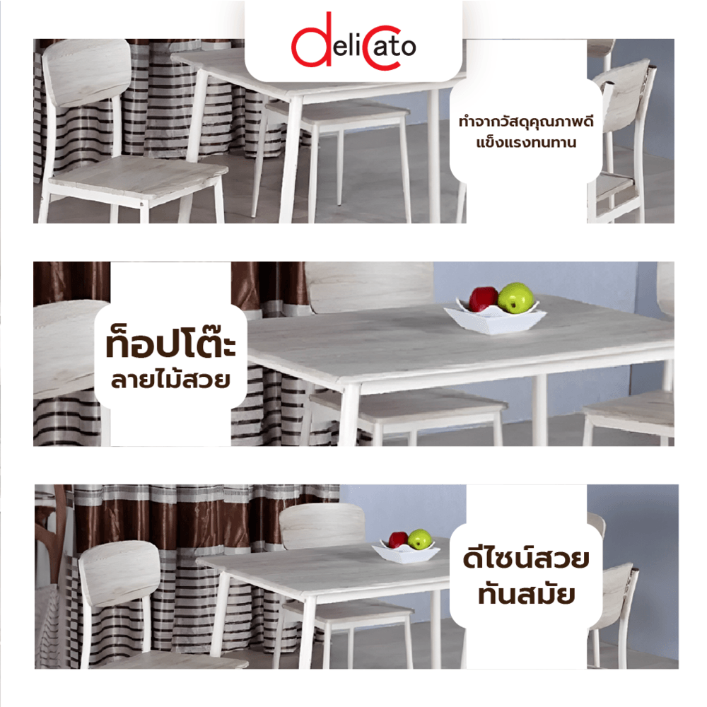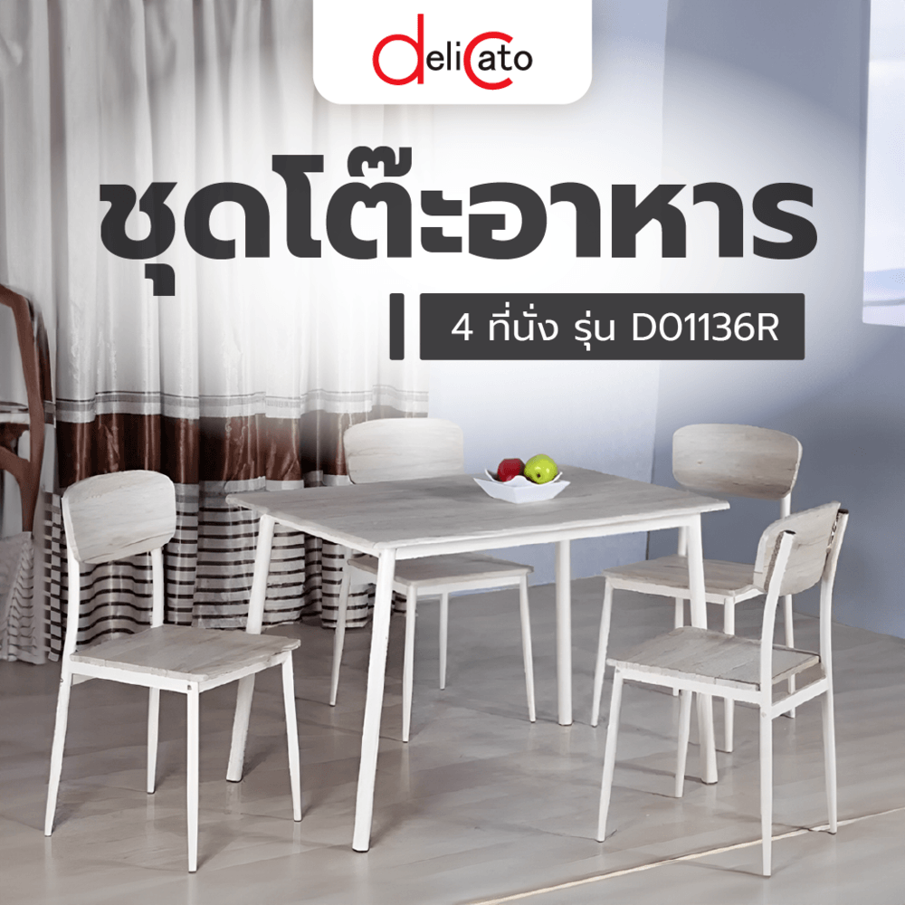 Delicato ชุดโต๊ะอาหาร 4 ที่นั่ง รุ่น D01136R โต๊ะ:110X70X76.5ซม. เก้าอี้:41X45.5X84.5ซม. สีขาว