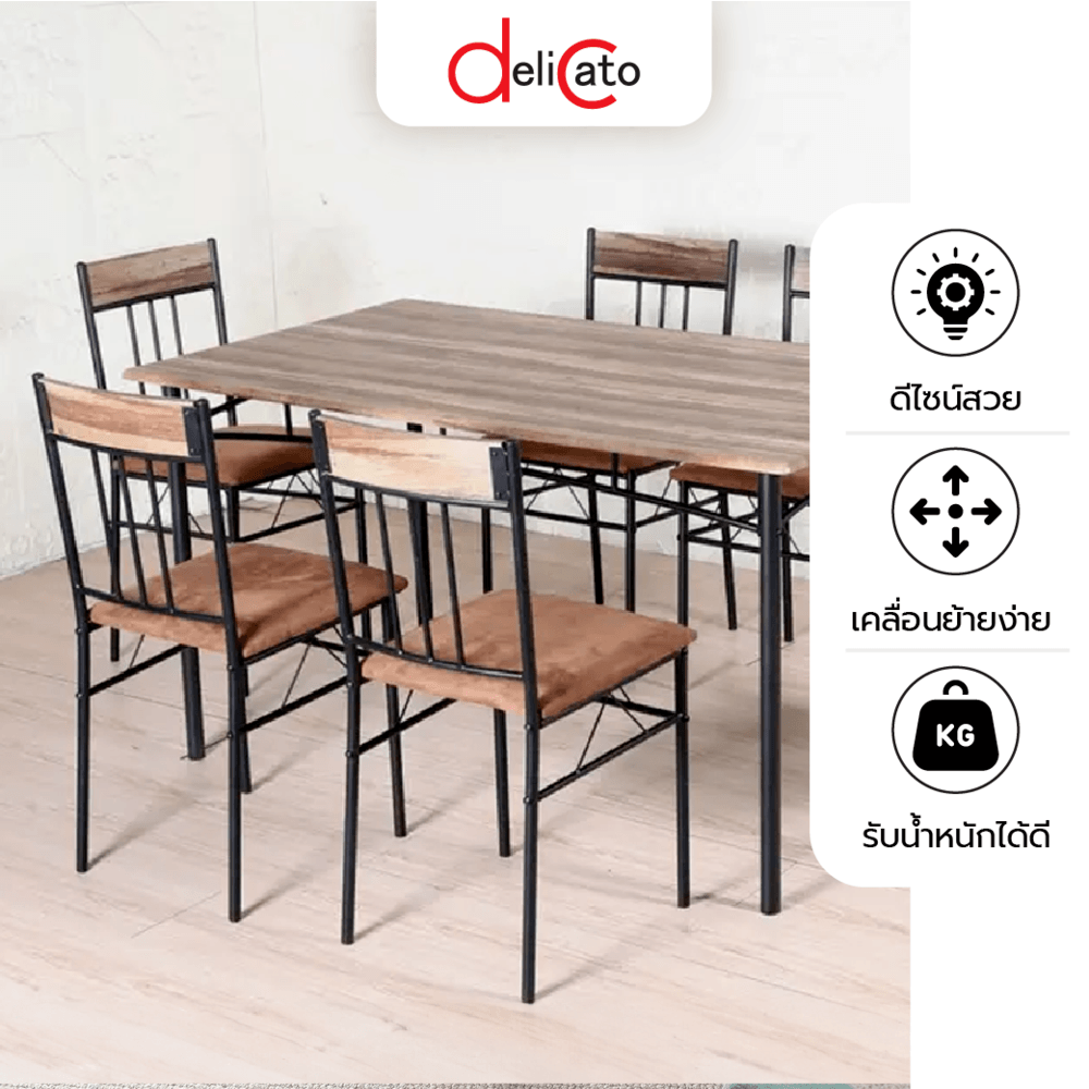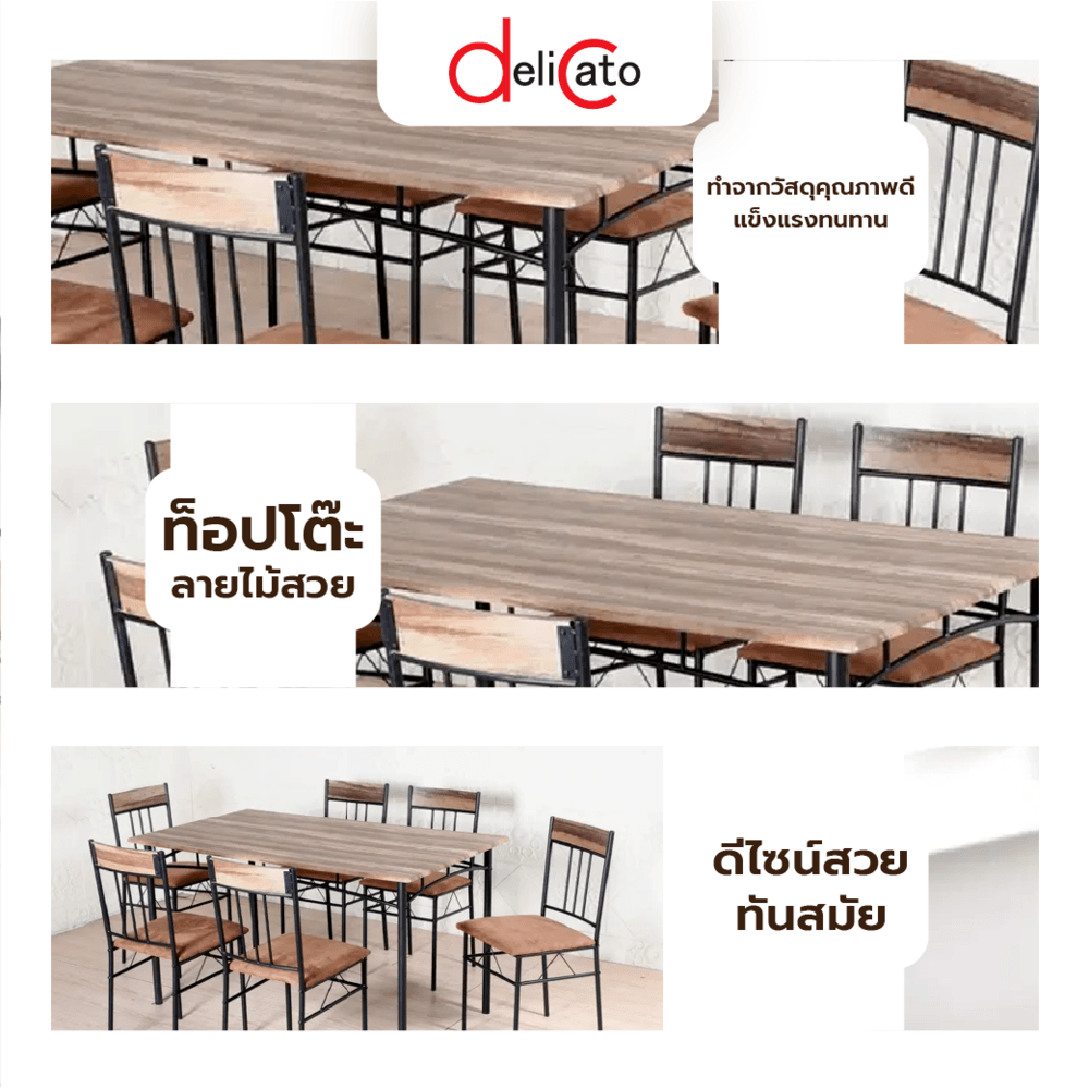 Delicato ชุดโต๊ะอาหาร 6 ที่นั่ง รุ่น D01284A โต๊ะ:140X80X75ซม. เก้าอี้:45X42X85ซม. สีน้ำตาล