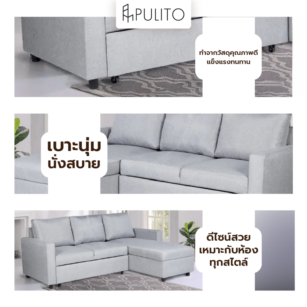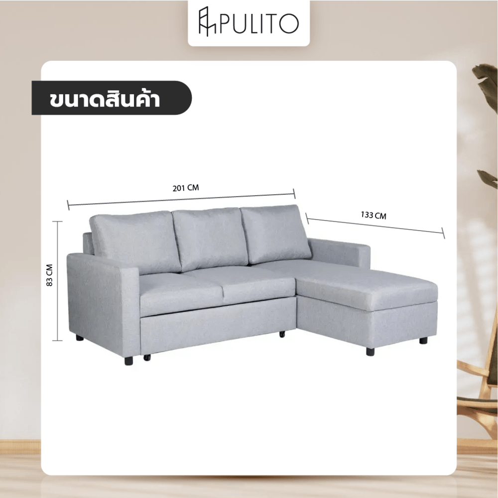 PULITO โซฟาเบดเข้ามุม มีที่เก็บของ รุ่น IVAR สีเทา